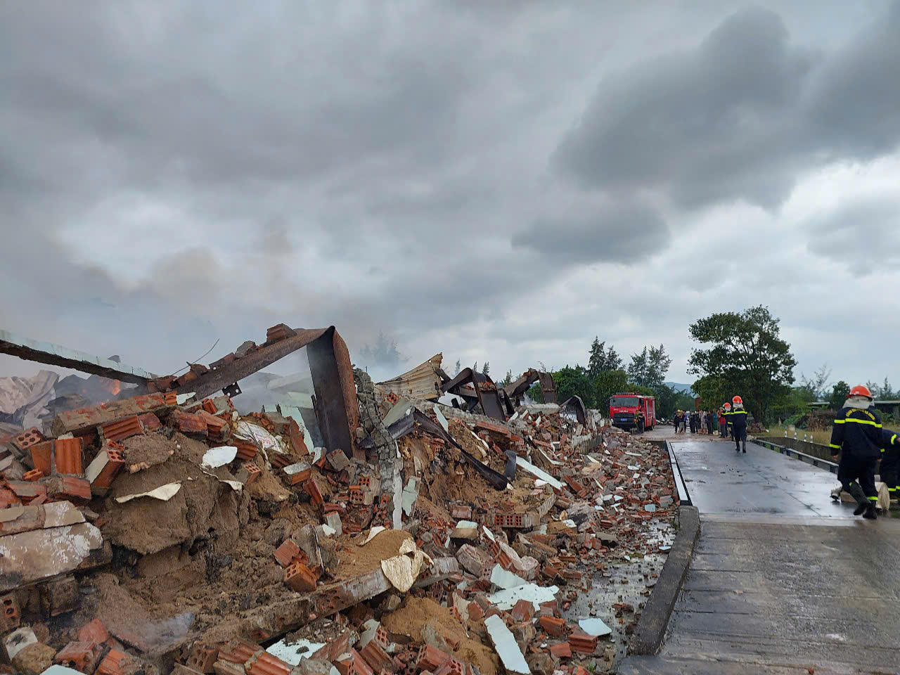 Sức nóng làm mái và bức tường nhà xưởng đổ sập. |