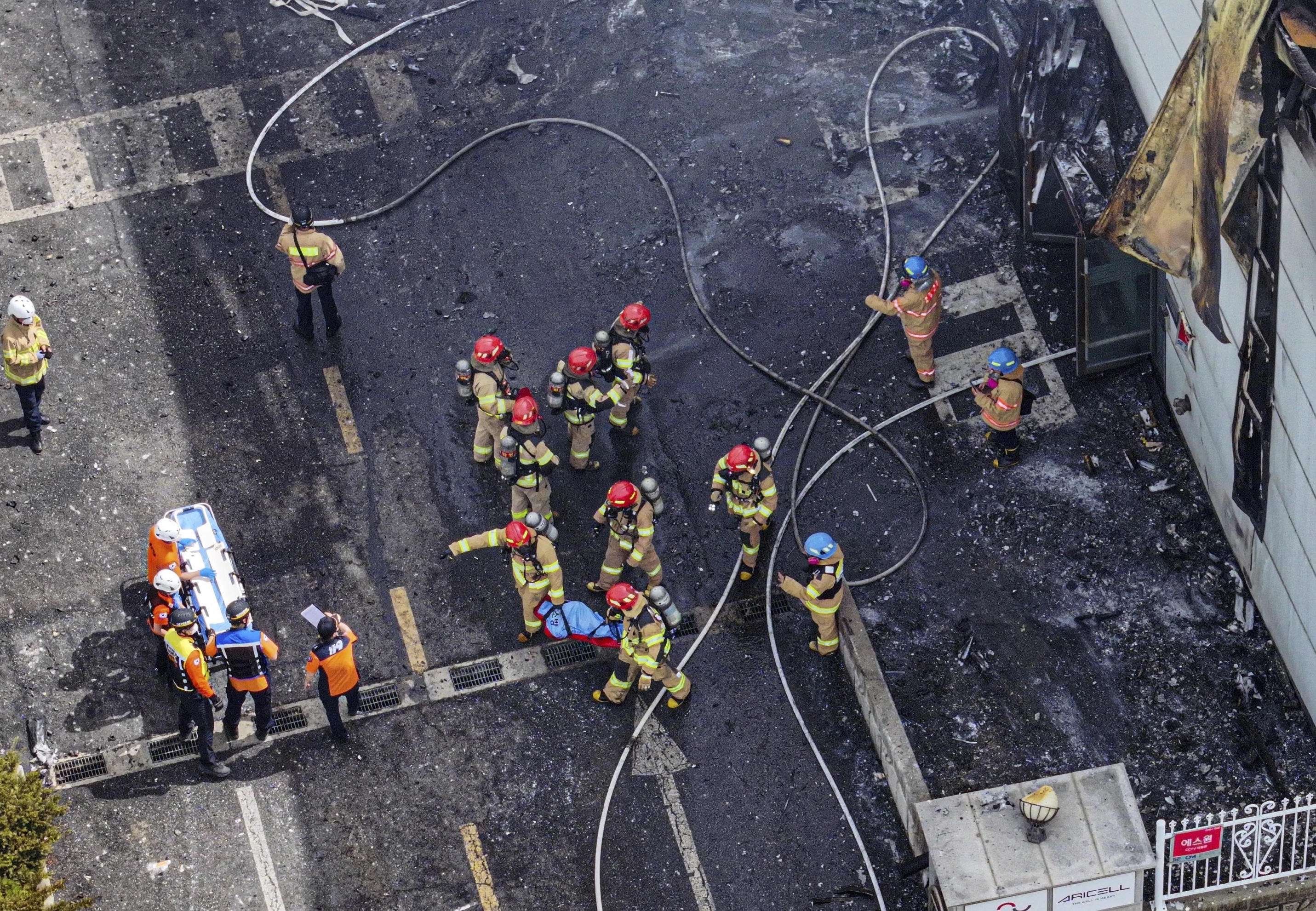 | Tại thời điểm xảy ra vụ cháy, trong nhà máy được cho là có ít nhất 35.000 cục pin. Ảnh: Hong Ki-wonj/Yonhap. |
