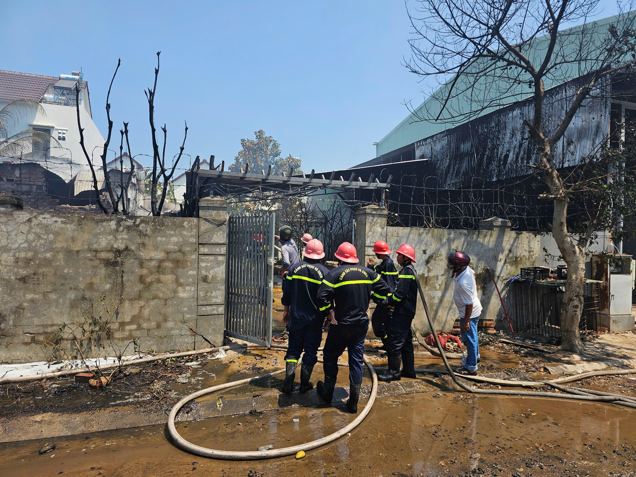 Đến khoảng 12h45 cùng ngày, đám cháy cơ bản được khống chế. Mặc dù không có thiệt hại về người, tuy nhiên ngôi nhà và khu vực chứa dung môi bị thiêu rụi hoàn toàn, mái tôn bị đổ sụp, tường rào bị nứt toác.