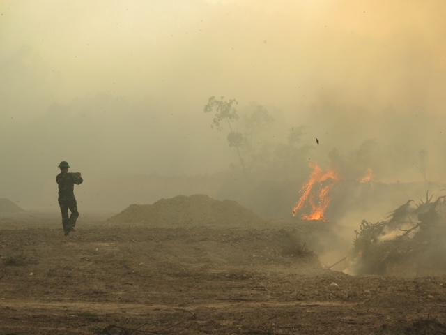 Thảm thực bì ở đây gồm có dây leo, cành cây khô, bụi rậm, lá thông và lá tràm khô dày … càng như thêm “mồi” cho lửa bùng dữ dội.