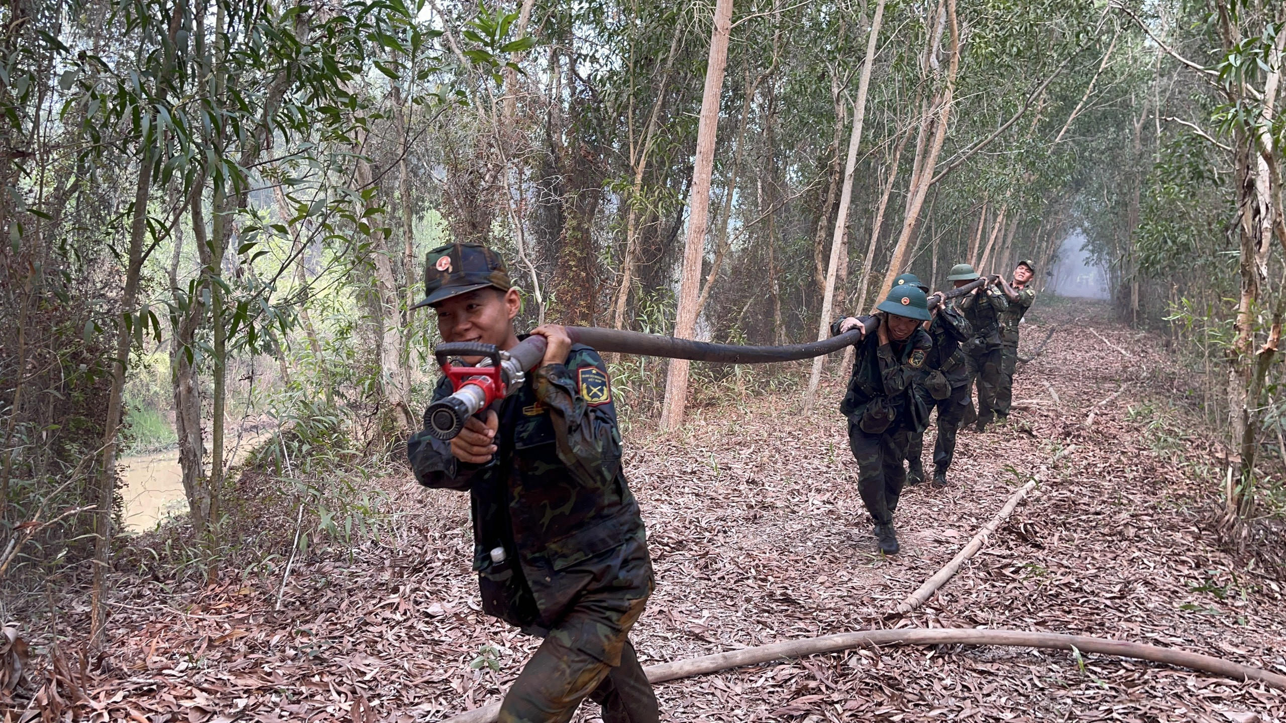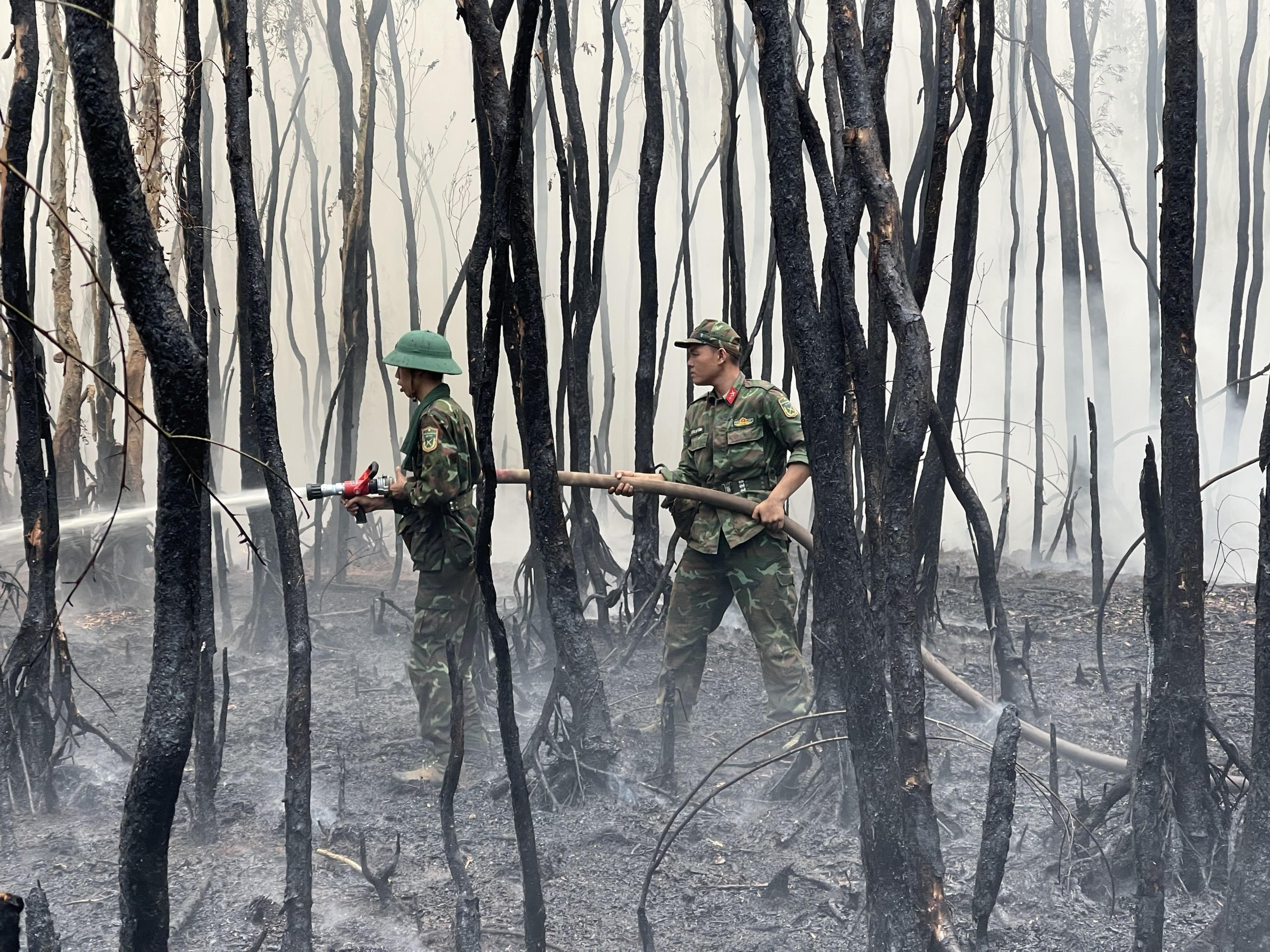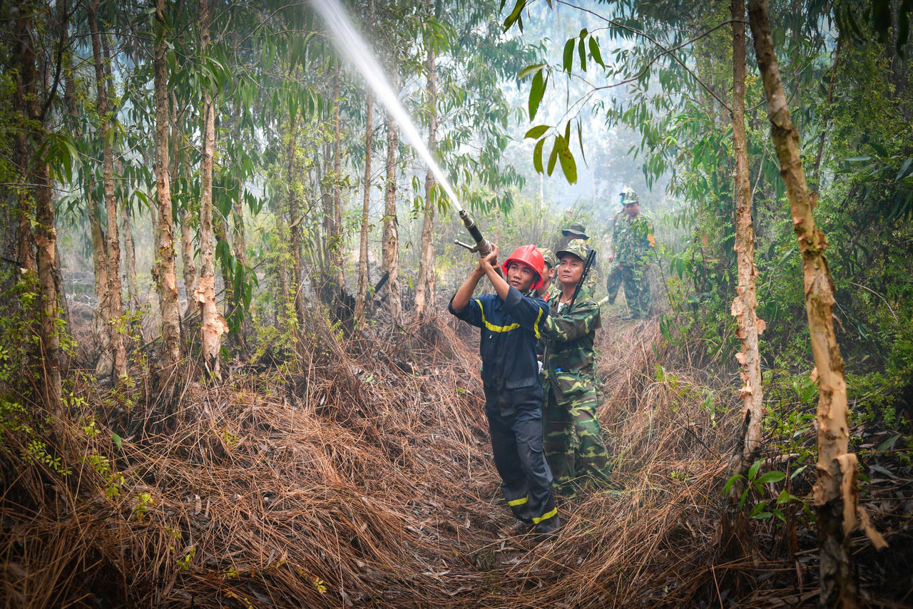 Sở Nông nghiệp và Phát triển nông thôn tỉnh Kiên Giang cho biết, hàng trăm cán bộ, chiến sĩ Sư đoàn 330 Quân khu 9, Công an tỉnh Kiên Giang, Hạt kiểm lâm địa phương và các đơn vị liên quan đã được điều động cùng nhiều xe chữa cháy, 35 máy bơm nước chuyên dùng, 2 vỏ máy, 1 ca nô, 2 flycam để dập lửa. Hiện lực lượng chức năng địa phương vẫn túc trực để chữa cháy rừng trên.