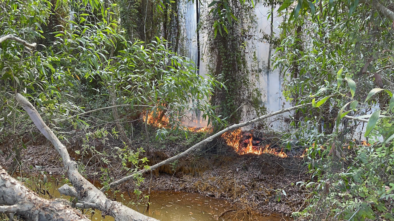 Trước đó, khoảng 11h ngày 13/4, ở huyện Giang Thành cũng xảy ra hai vụ cháy rừng tràm tái sinh với diện tích thiệt hại ước tính gần 2ha.