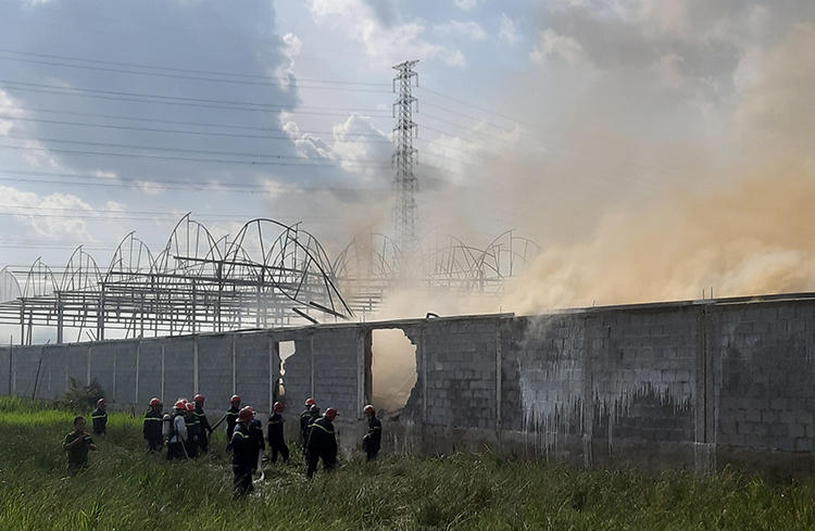 Cháy xưởng làm nệm cao su ở vùng ven Sài Gòn