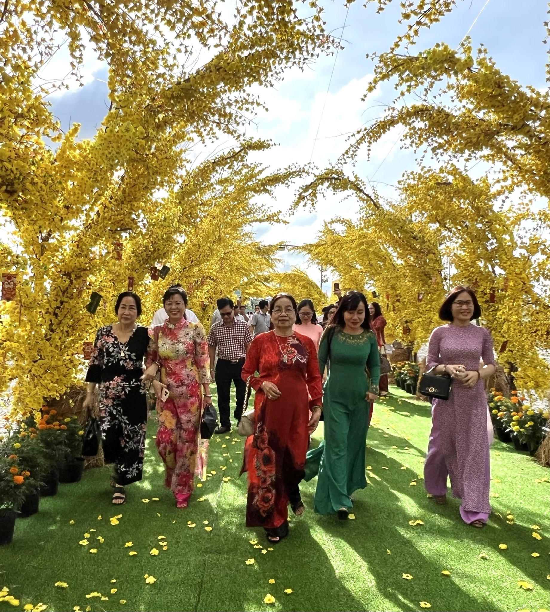 Cung đường mùa Xuân được trang trí với khoảng 90 nghìn nhánh mai nhập khẩu với tổng chi phí hơn 3 tỷ đồng. Ngoài mai vàng còn có nhiều tiểu cảnh quê như cảnh Tết sum vầy, tò he, tiệm bánh, sạp báo Xuân,… gợi nhớ cảnh Tết ngày xưa.