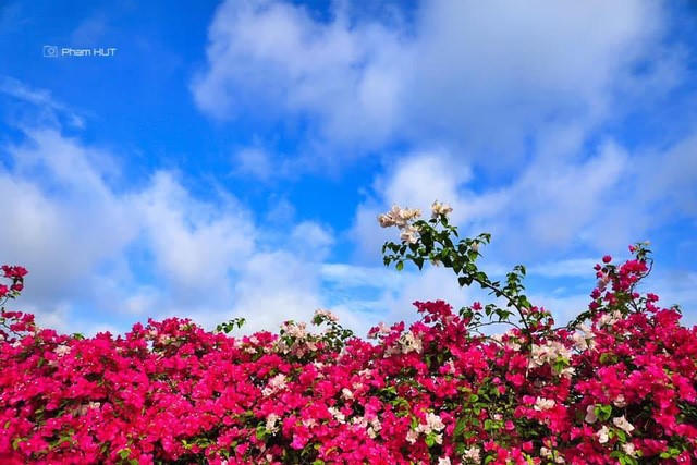 Một background ấn tượng khi nên trời xanh biếc, những bông hoa giấy nổi lên rực rỡ cả một góc trời. Thêm vào đó, chủ đầu tư đã tinh tế thiết kế những điểm dừng chân, check-in ngay trên cầu, thuận tiện để cư dân dễ dàng dừng chân, lưu lại những tấm hình xinh đẹp nhưng vẫn đảm bảo an toàn giao thông.