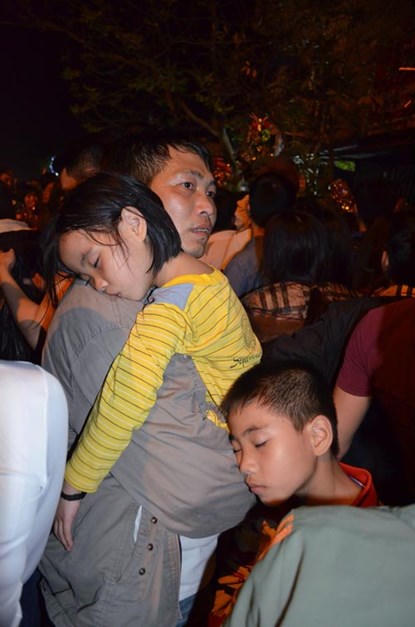 Trên tờ Người lao động, ông Lê Văn Sơn (48 tuổi, ở Khoái Châu, Hưng Yên) cho biết đi cùng với mấy người hàng xóm nhưng đã lạc mất nhau. Ông bị xô đẩy cả vài trăm mét và đã hết sức, không thể đi được nữa.