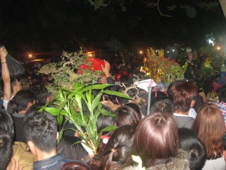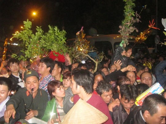 Chị Hoàng Thị Mai, một người bán cây tại đây, cho hay: "Thường thì những năm trước, mọi người đi ngay từ chiều mùng 7 nhưng năm nay, lượng người đổ về buổi chiều ít hơn, ban đêm lại tăng đột biến".