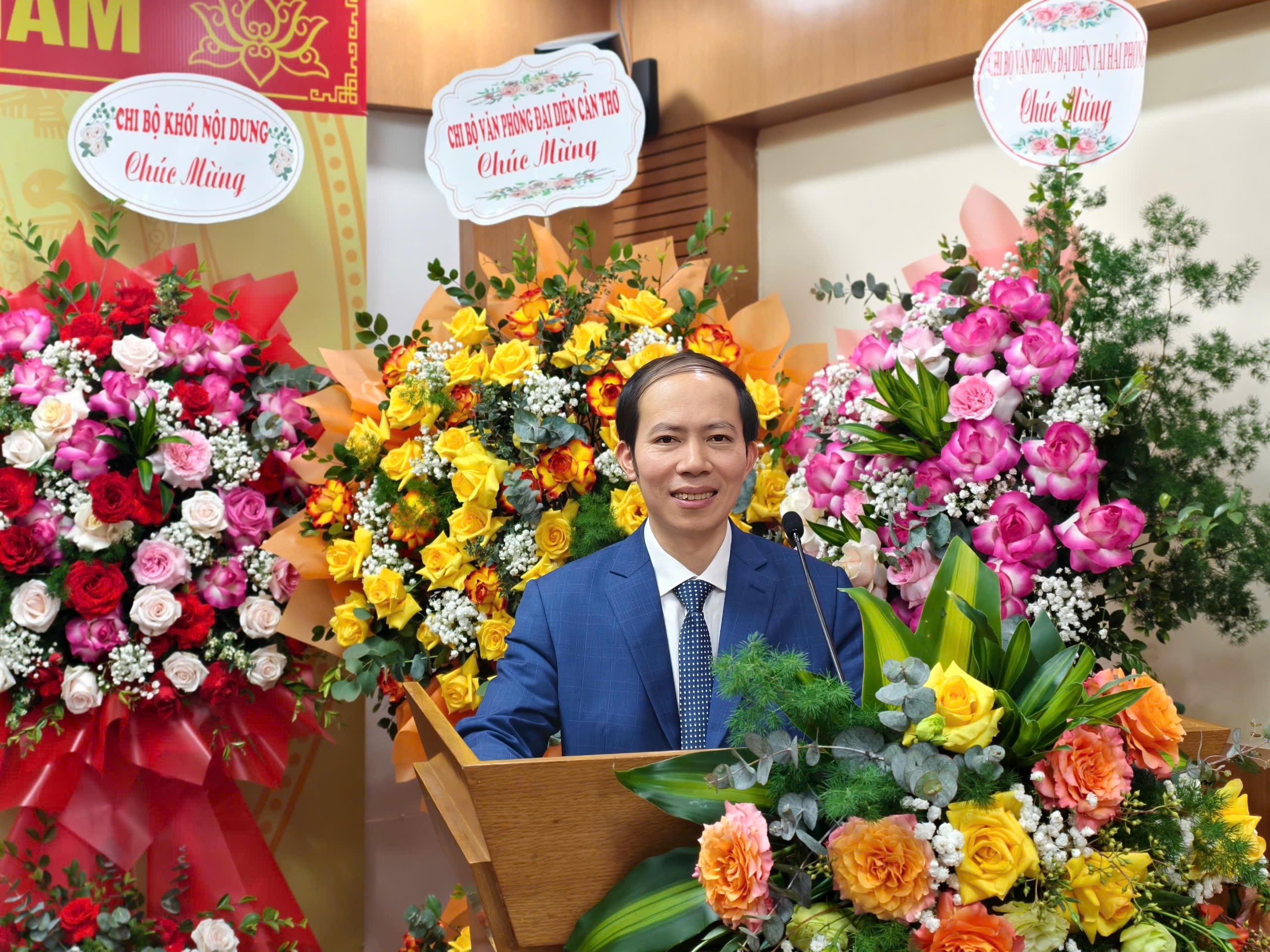 Đồng chí Vũ Hoài Nam – Bí thư Đảng ủy, Tổng biên tập phát biểu tại Đại hội. |