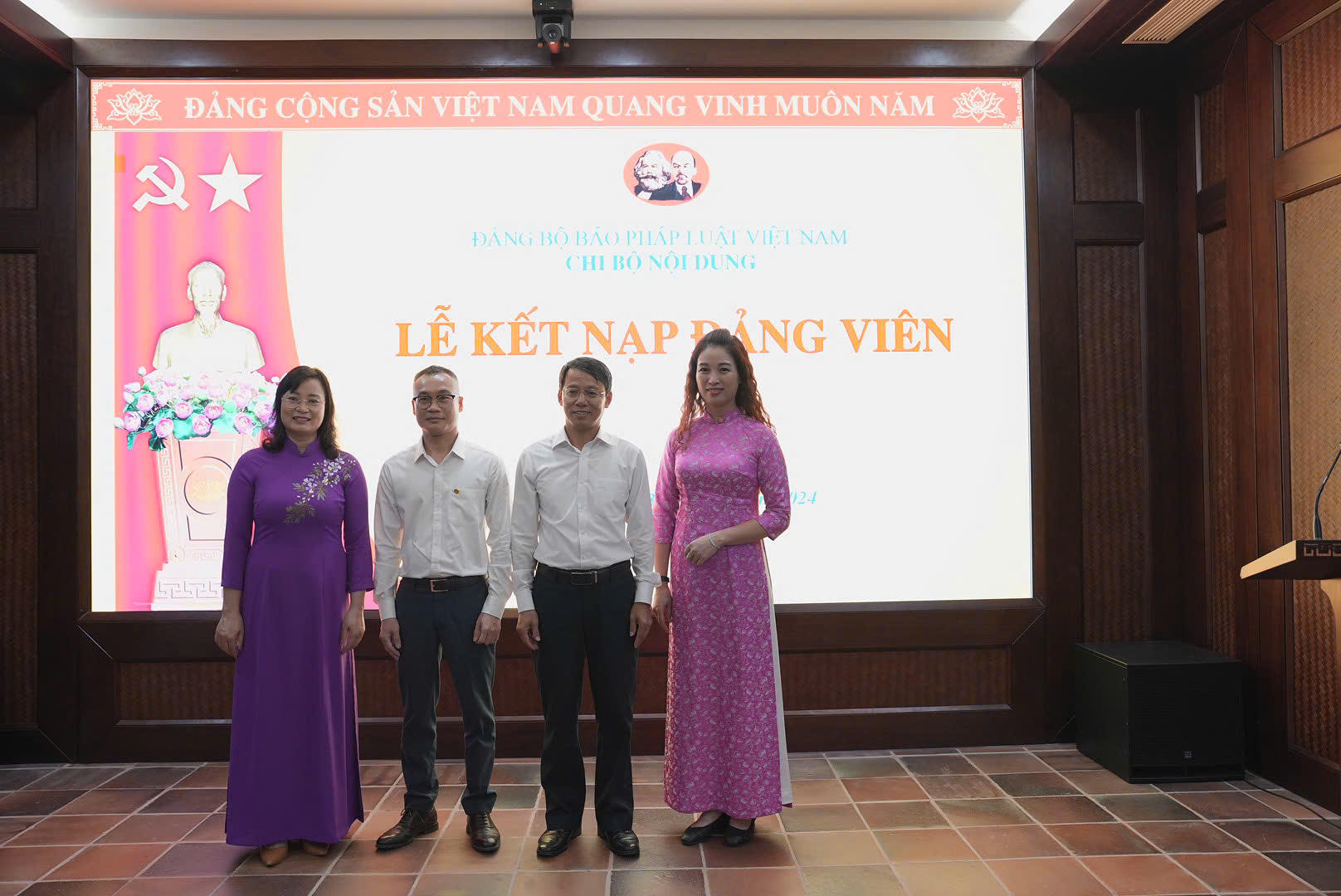 Trước lá cờ Tổ quốc, cờ Đảng, chân dung Chủ tịch Hồ Chí Minh và sự chứng kiến của các đảng viên trong chi bộ, 03 Đảng viên mới đã đọc lời tuyên thệ tuyệt đối trung thành với lý tưởng và mục tiêu cách mạng của Đảng, thực hiện nghiêm túc, trách nhiệm các nhiệm vụ của người đảng viên. Các Đảng viên mới xin hứa sẽ luôn nỗ lực cố gắng, không ngừng trau dồi kiến thức, rèn luyện bản thân để tích cực đóng góp công sức vào xây dựng Đảng bộ Báo, cơ quan, đơn vị vững mạnh và phát triển.