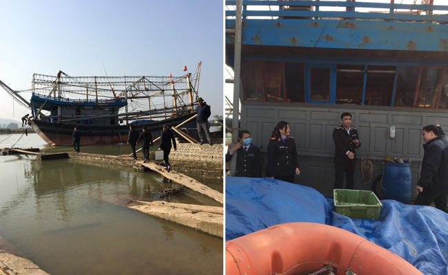 Cán bộ THADS huyện Hậu Lộc trong một buổi đi xác minh tài sản thi hành án là tàu cá (Ảnh: TH Thanh Hóa) |