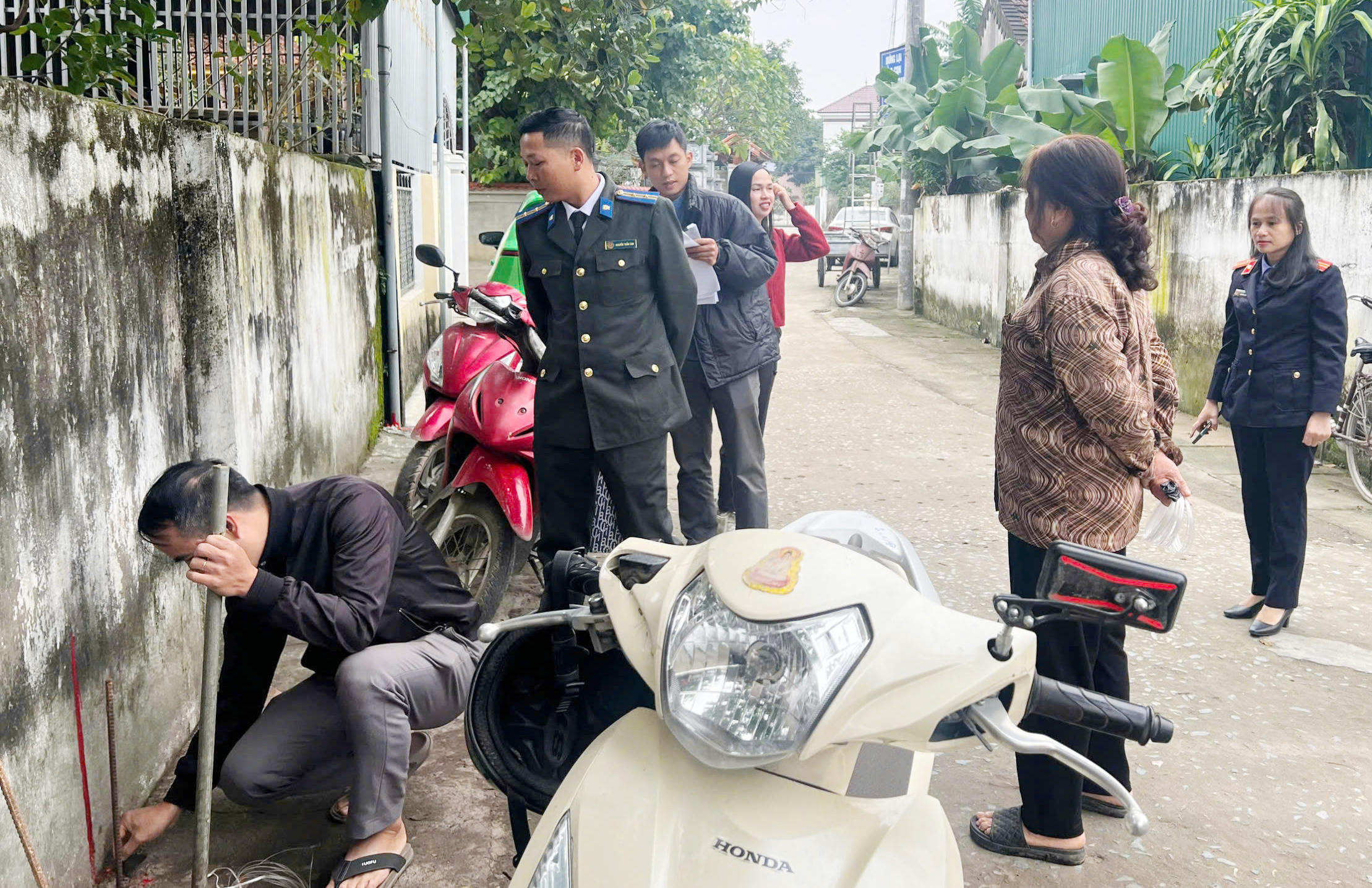 Tổ công tác của Chi cục THADS huyện Hưng Nguyên tiến hành các biện pháp nghiệp vụ trong một vụ án |