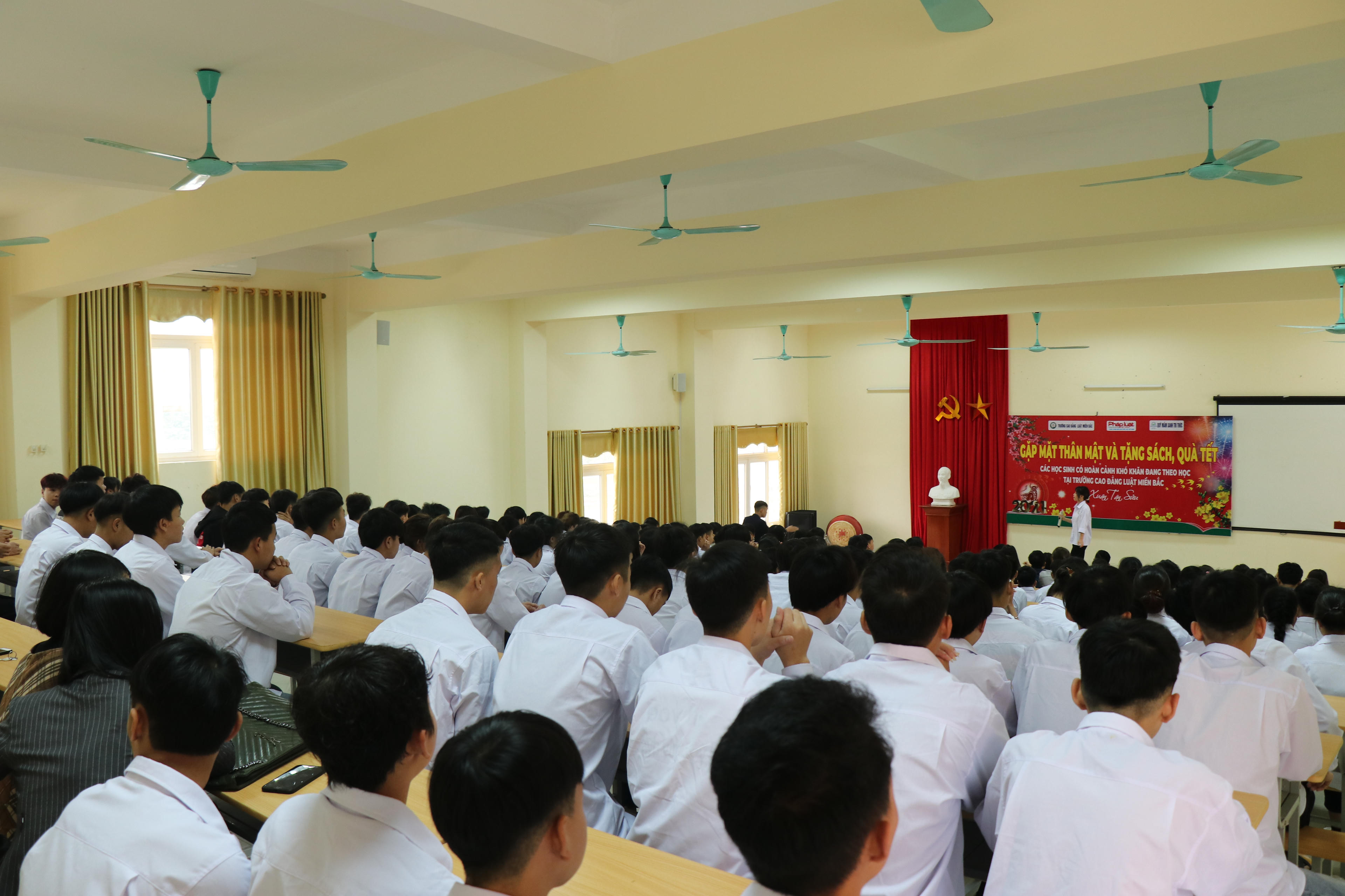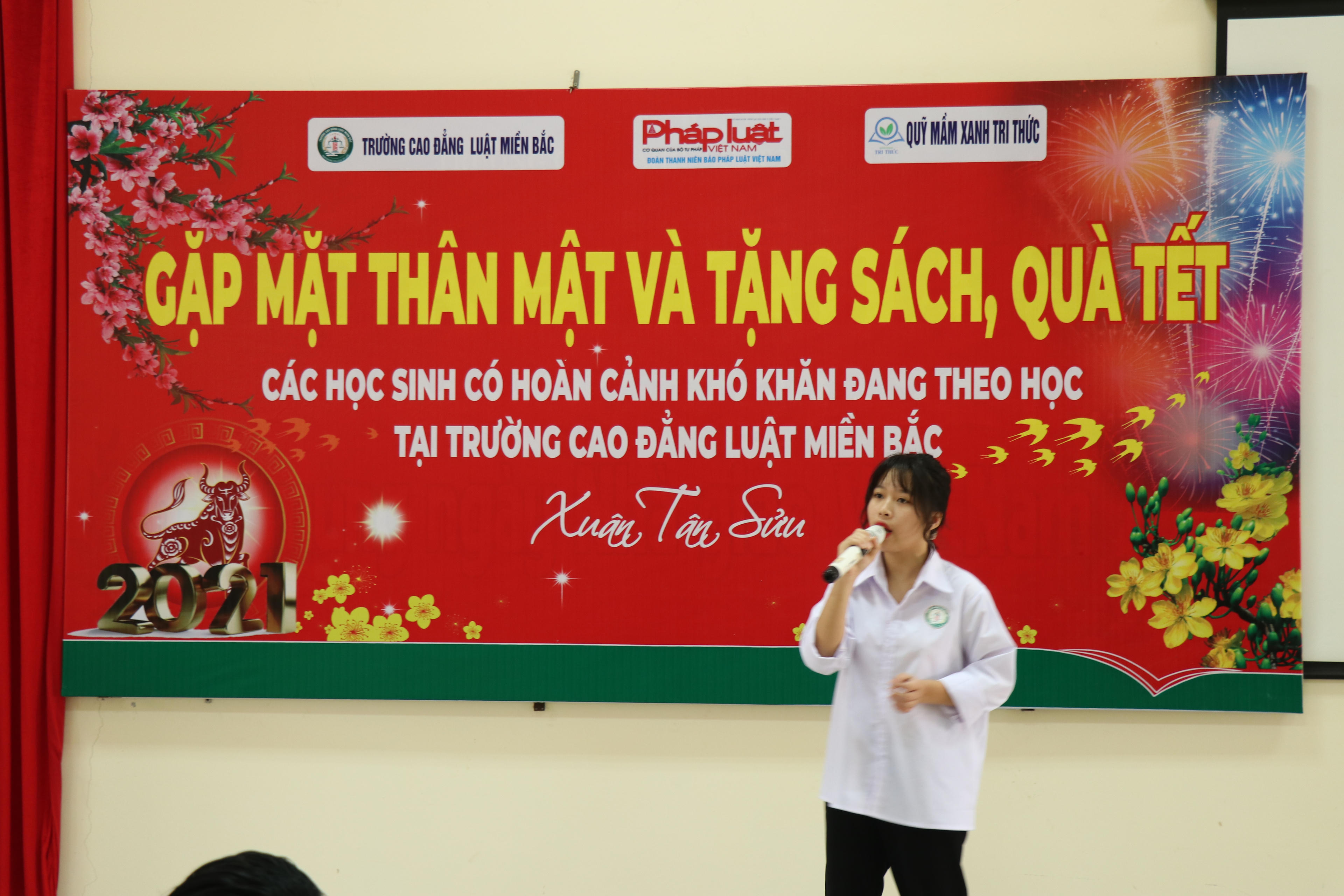 Phát biểu tại chương trình, ông Nguyễn Mạnh Cường, Đại diện cho Trường Cao đẳng Luật miền Bắc gửi lời cảm ơn chân thành tới Chi đoàn Báo Pháp luật Việt Nam, đặc biệt là sự đồng hành, quan tâm giúp đỡ thiết thực của Công ty Cổ phần sách MC Books. Các đơn vị tài trợ đã giúp các em học sinh có hoàn cảnh khó khăn của trường có thêm động lực, nuôi dưỡng ước mơ học tập, phấn đấu cho tương lai. Đồng thời, mang tới một không khí Tết đầm ấm nghĩa tình cho các em và gia đình trong năm mới Tân Sửu.