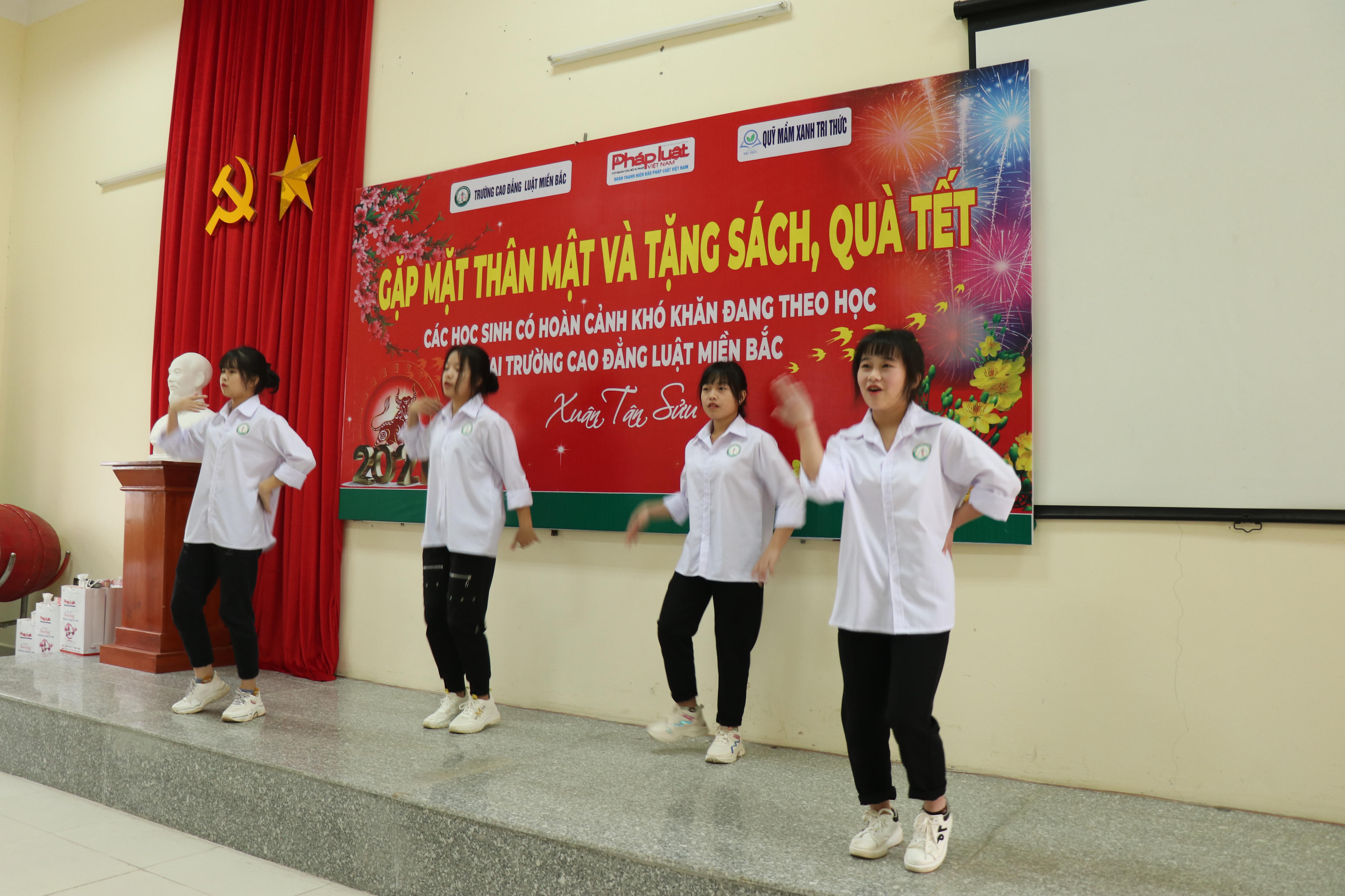 | Các tiết mục văn nghệ mộc mạc nhưng sôi nổi, ý nghĩa của chính các em học sinh tại Trường Cao đẳng Luật miền Bắc |