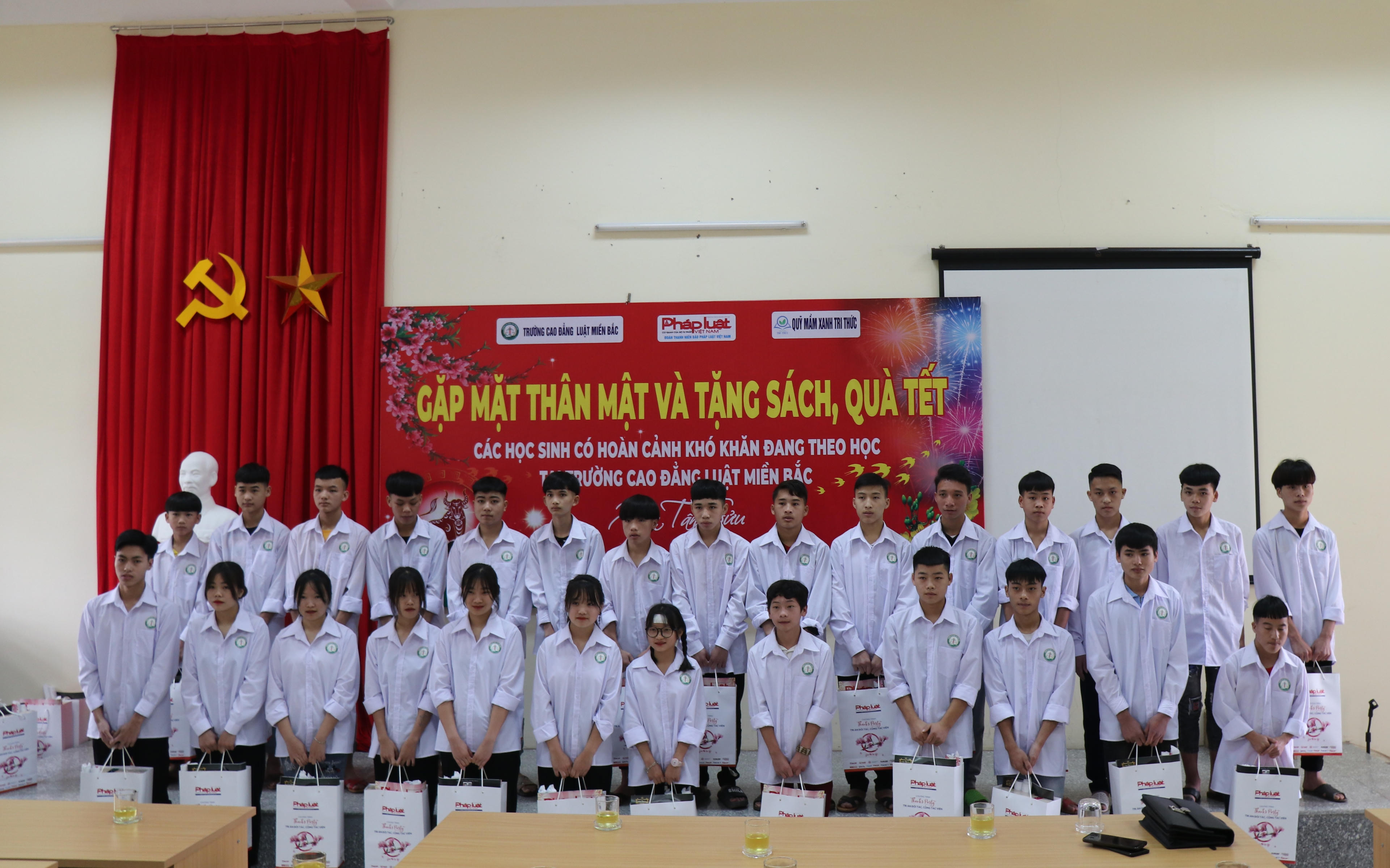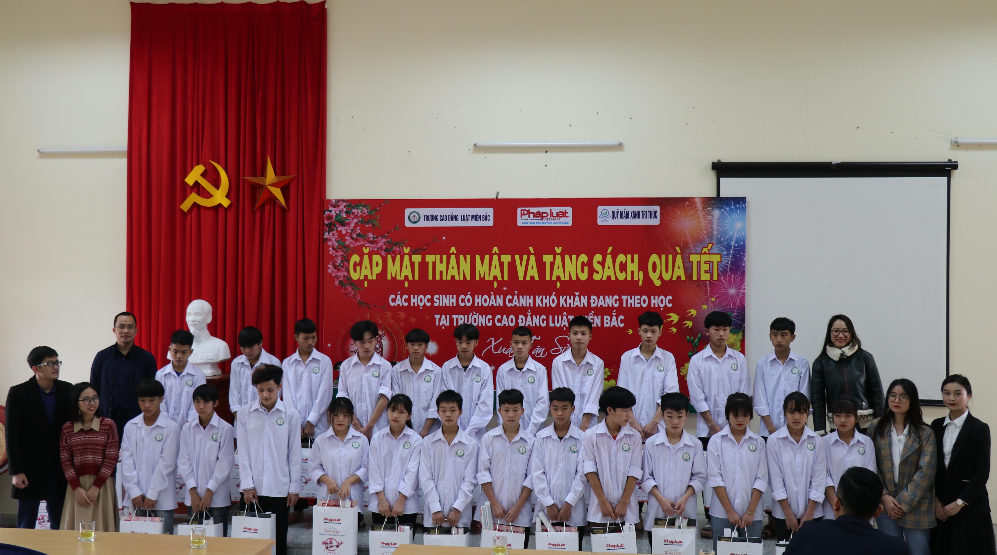 Sáng ngày 21/1, Chi đoàn thanh niên Báo Pháp luật Việt Nam phối hợp với Quỹ Mầm xanh tri thức của Công ty Cổ phần sách MC Books và Trường Cao đẳng Luật miền Bắc tặng 348 cuốn sách, 174 xuất quà Tết cho 174 học sinh nội trú có hoàn cảnh khó khăn tại trường.