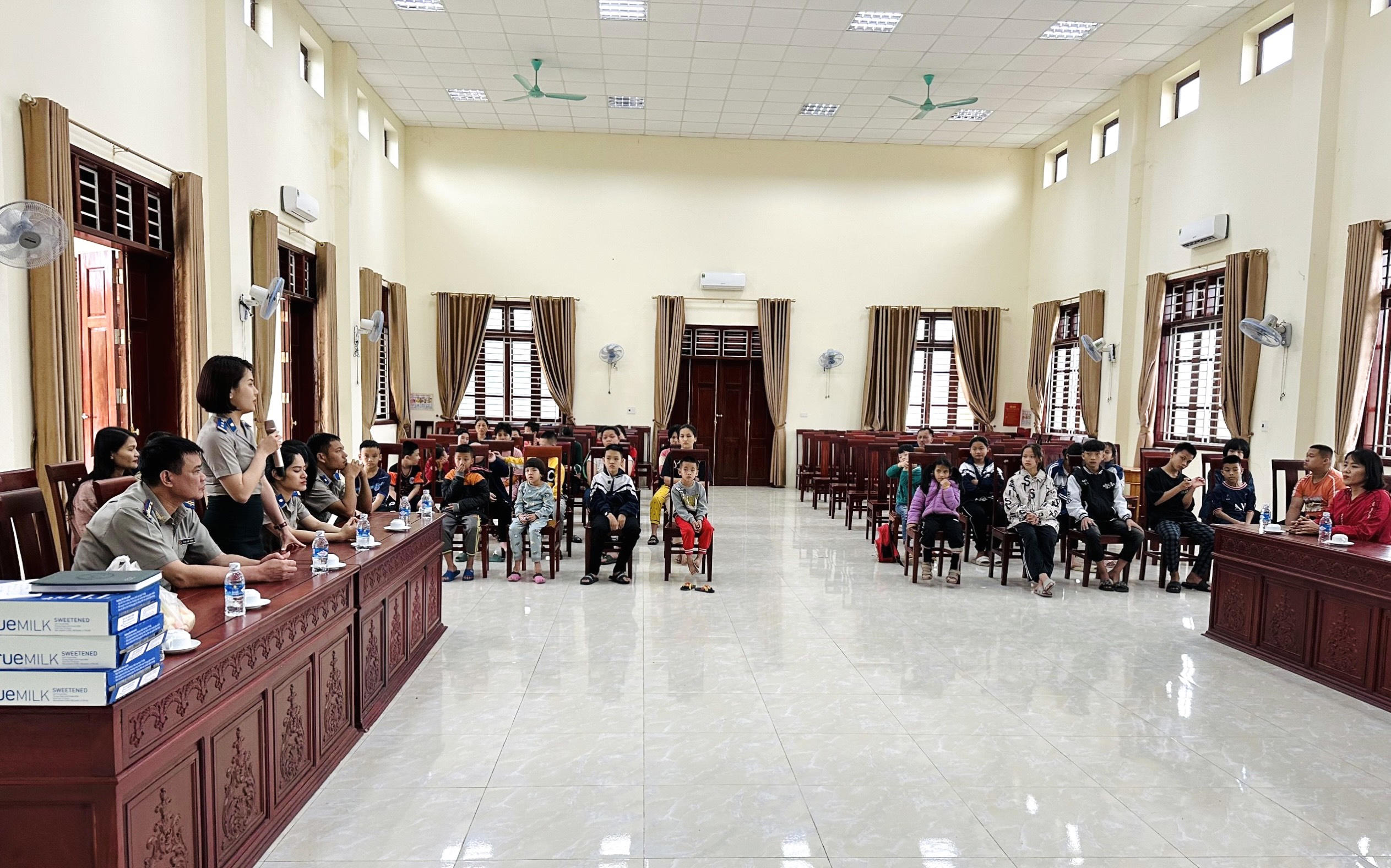 Làng trẻ em SOS Hà Tĩnh hiện đang chăm sóc, nuôi dưỡng hơn 112 trẻ em, trong đó có 7 trẻ sơ sinh, 25 trẻ khuyết tật, 10 em đang học đại học và nhiều em có hoàn cảnh khó khăn. Nhằm chia sẻ và động viên các em, dịp này, Chi đoàn thanh niên Cục THADS Hà Tĩnh trao tặng 119 suất quà cho các em gồm sữa và bánh, trong đó có 7 trẻ sơ sinh đoàn trao mỗi em 500 ngàn đồng. Tất cả chi phí cho những phần quà này từ nguồn đóng góp của đoàn viên Chi đoàn và kêu gọi ủng hộ trong đơn vị.
