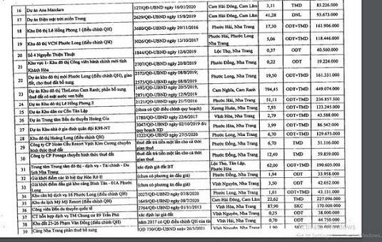 Trong 351 dự án cần xác định giá đất, TP. Nha Trang có 124 dự án (chiếm hơn 1.081 ha); TP. Cam Ranh 22 dự án (chiếm hơn 101 ha); huyện Cam Lâm 48 dự án (chiếm hơn 1.00 ha)...