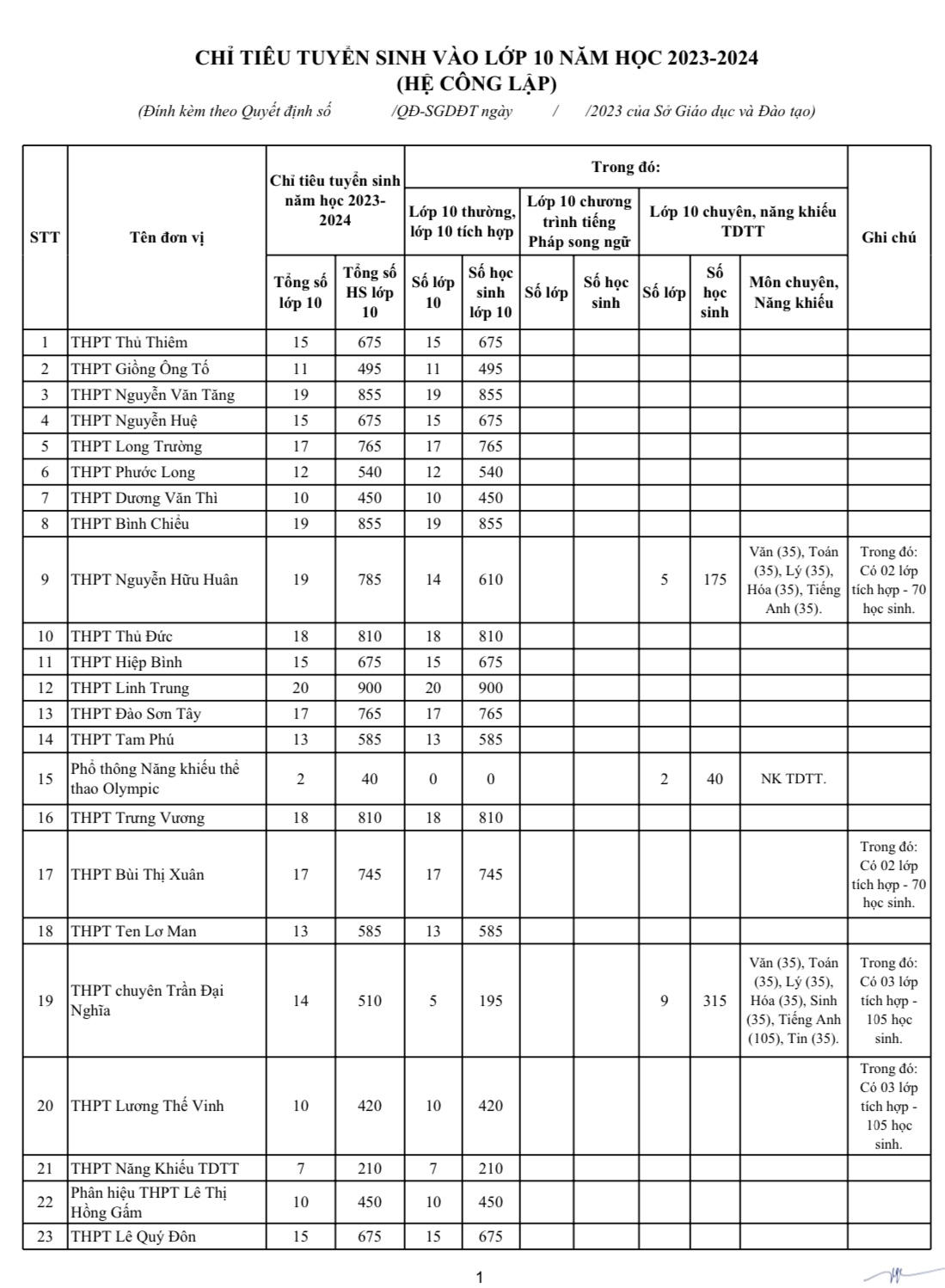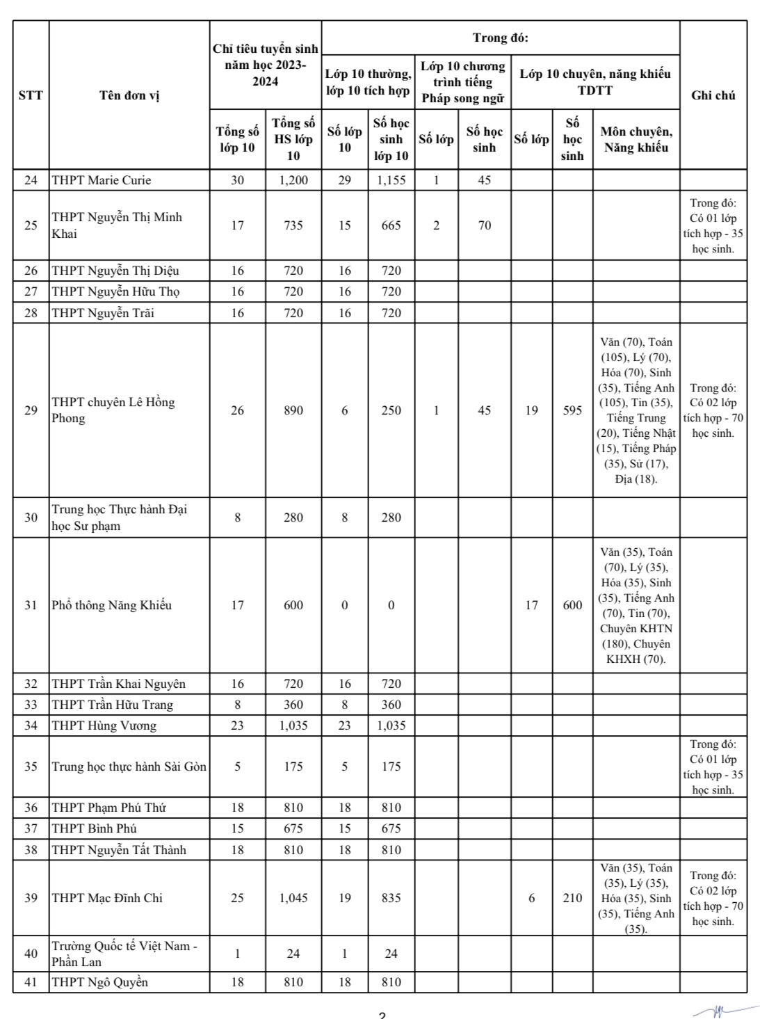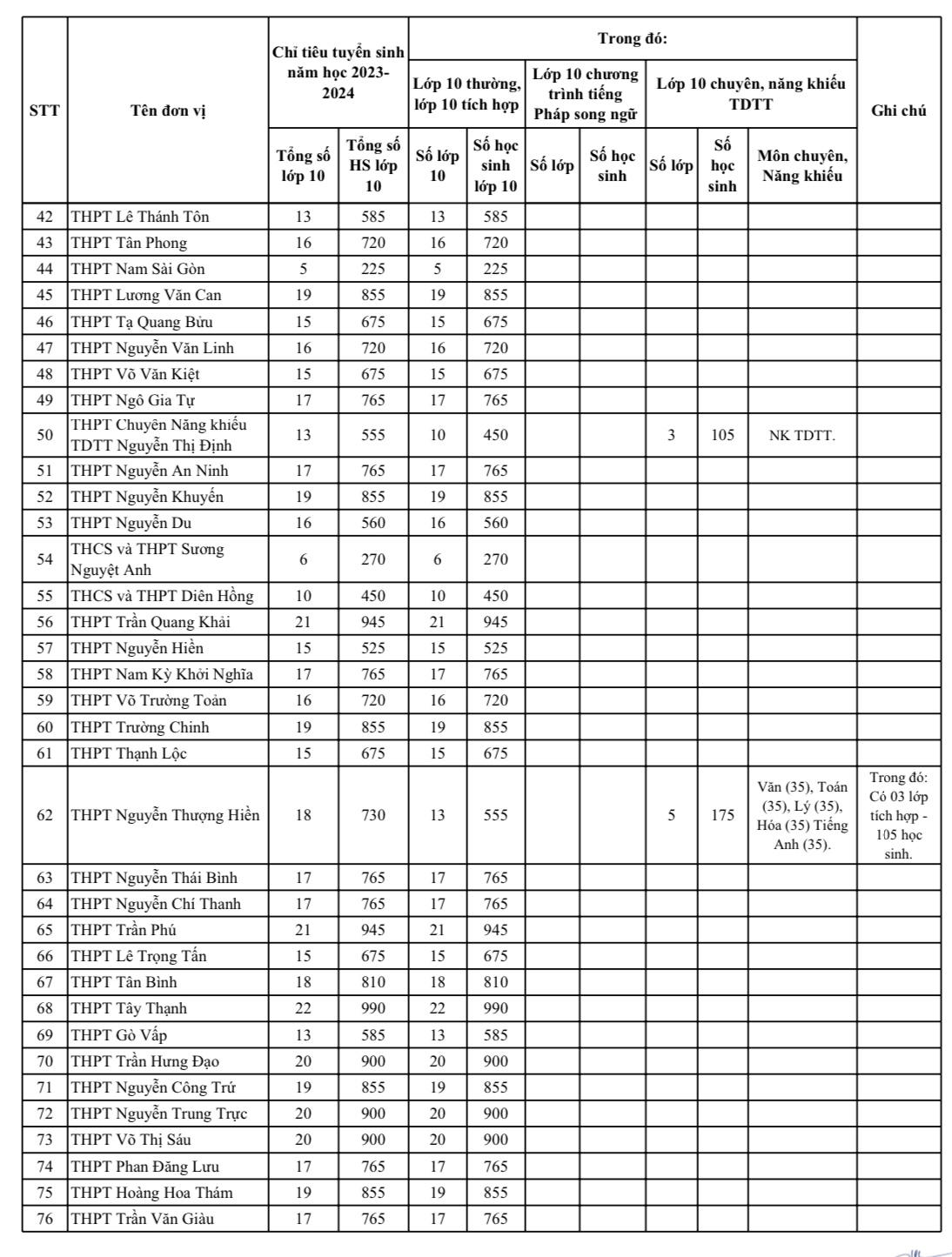 Tổng chỉ tiêu lớp 10 của TP HCM năm nay là 77.294. Chỉ tiêu từng trường cụ thể như sau: