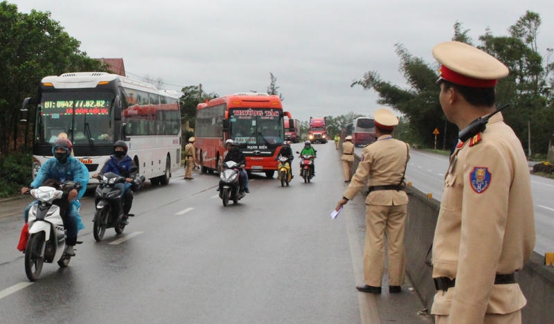 Ngày 23/2 (tức mùng 8 tháng Giêng năm Mậu Tuất), Phòng CSGT (PC67) - Công an tỉnh Quảng Bình đã phối hợp với các lực lượng liên quan tổ chức ra quân tổng kiểm tra, kiểm soát xe khách qua địa bàn tỉnh này sau Tết Nguyên đán.