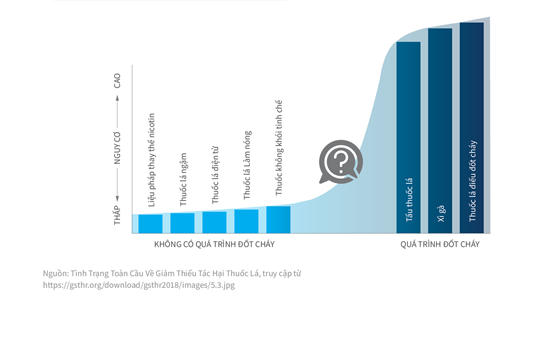 Biểu đồ minh họa về mức độ nguy cơ của các sản phẩm thuốc lá, trong đó thuốc lá điếu có nguy cơ cao nhất. |