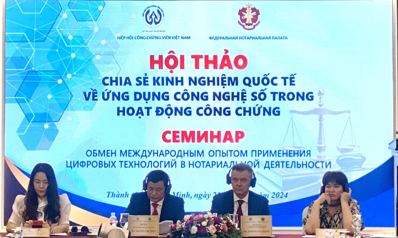 Đến dự Hội thảo có ông Timur Sirozhevich, Đại diện Lãnh sự quan Nga tại Việt Nam; ông Đồng Ngọc Ba, ĐBQH, Ủy viên Thường trực Ủy ban Pháp luật của Quốc hội; ông Nguyễn Hữu Huyên, Vụ trưởng Vụ Hợp tác Quốc tế, Bộ Tư pháp; ông Konstantin Korsik, Chủ tịch Hiệp hội Công chứng Liên bang Nga; ông Nguyễn Chí Thiện, Chủ tịch Hiệp hội Công chứng Việt Nam cùng nhiều đại diện thuộc Hiệp hội công chứng Liên Bang nga; đại diện lãnh đạo Sở Tư pháp TP Hồ Chí Minh; công chứng viên đang hoạt động trong lĩnh vực công chứng tại TP Hồ Chí Minh...