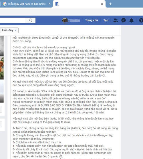 Những thông tin về việc cứu người đột quỵ bằng cách chích máu 10 đầu ngón tay vẫn được chia sẻ nhiều trên các mạng xã hội