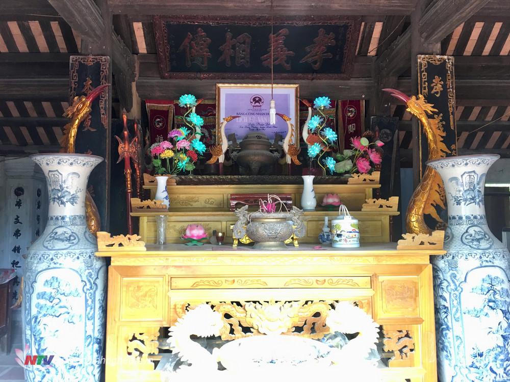 Đặc biệt, những nét chạm khắc ở những hiện vật cổ như Long ngai, án thư, kiệu đòn rồng…đều đạt đến độ tinh xảo. Ngoài ra, những bút tích xưa để lại như: các bức đại tự, hoành phi, câu đối, chúc văn bằng chữ Hán…đều thấm sâu tư tưởng và triết lý nhân văn “Uống nước nhớ nguồn” và “Nhân sinh do tổ” của dân tộc ta.