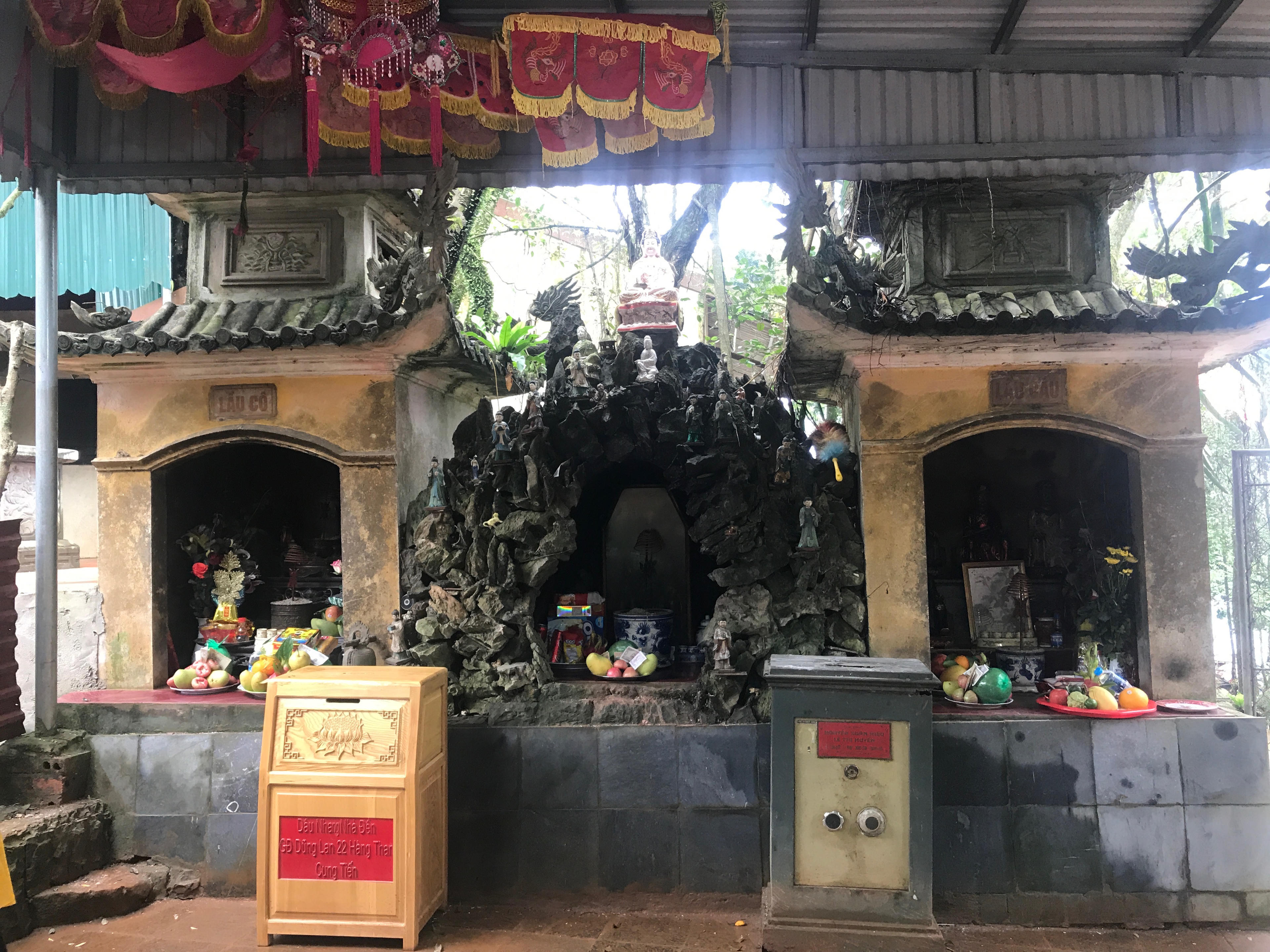 Huyệt đạo linh thiêng nằm trên đỉnh ngàn Nưa, theo cách gọi của các nhà phong thủy thì nơi đây là điểm hội tụ giao thoa của khí đất và trời (còn gọi là nơi mở cửa trời). “Điểm” huyệt thiêng được khoanh vùng rộng chừng ba chục mét vuông, trên có ban thờ Am Tiên đặt lộ thiên, trong không gian thanh sạch chỉ nghe mùi trầm hương ngào ngạt trong tiếng chuông gió du dương, thánh thót.