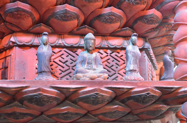 Từ cây cột trụ chính ở lòng tháp dóng ra những đòn ngang có tay đỡ ván các tầng cửu phẩm gồm tòa sen 6 cạnh.