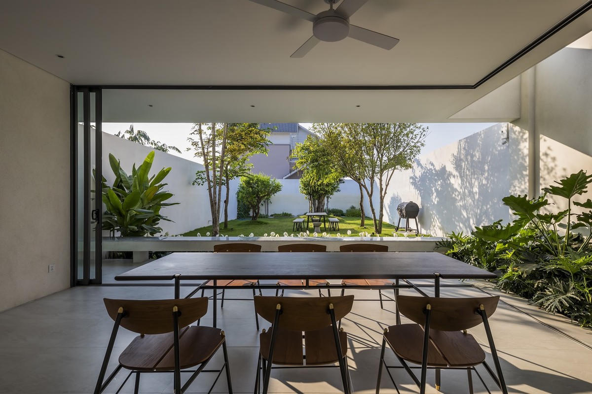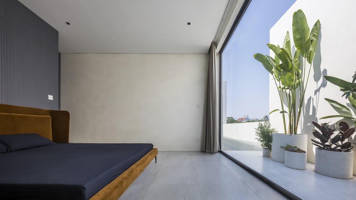 Phòng bếp được thiết kế thoáng đãng, cho phép tầm nhìn ra khu vườn xanh mát. Phòng ngủ tràn ngập ánh sáng tự nhiên và cây xanh len lỏi vào từng ngóc ngách của căn nhà, tạo ra một không gian sống gần gũi với thiên nhiên.