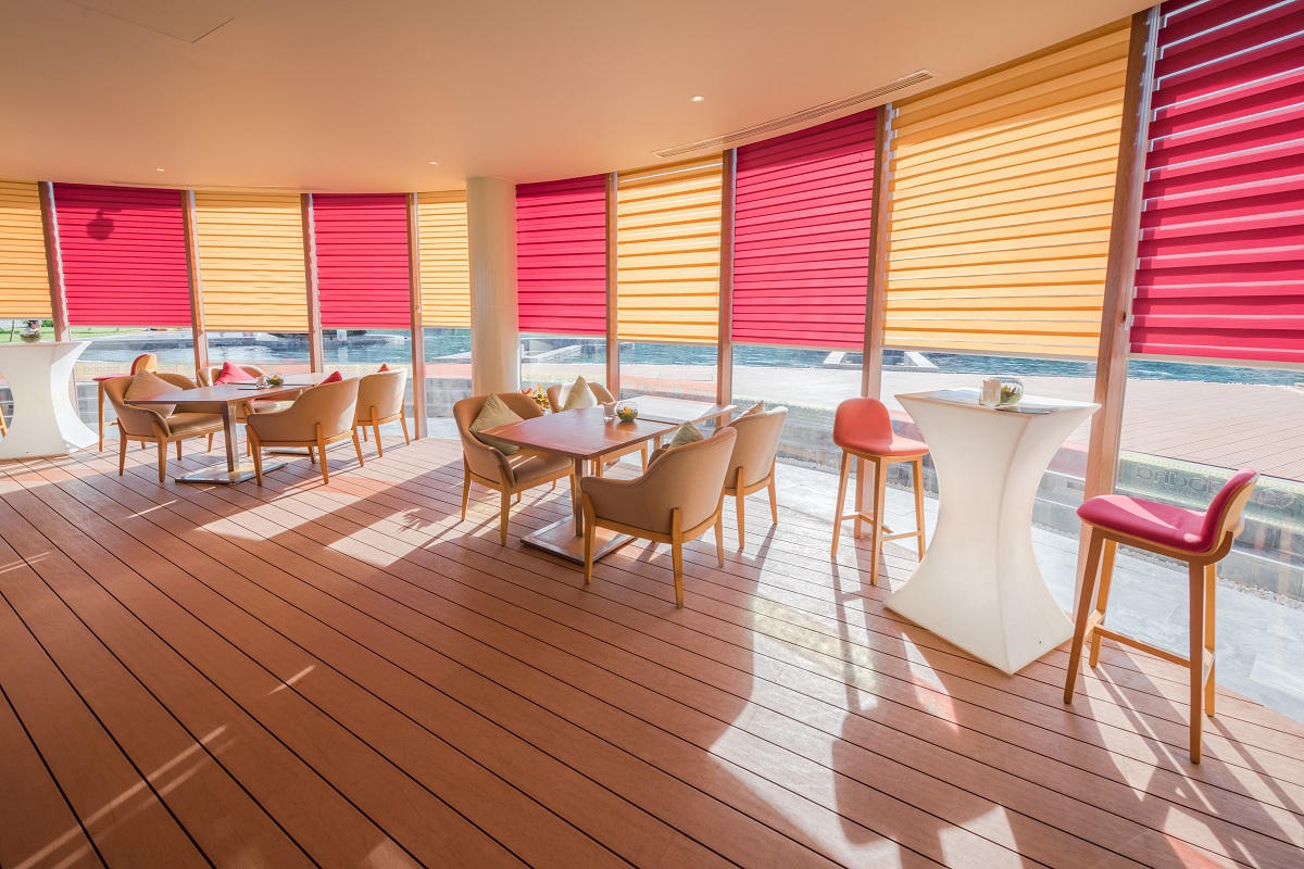 Tại Above All Pool, du khách có thể thảnh thơi chọn cho mình một góc thư giãn riêng, thưởng thức các món đồ ăn nhẹ và đồ uống mát lạnh từ quầy bar của bể bơi