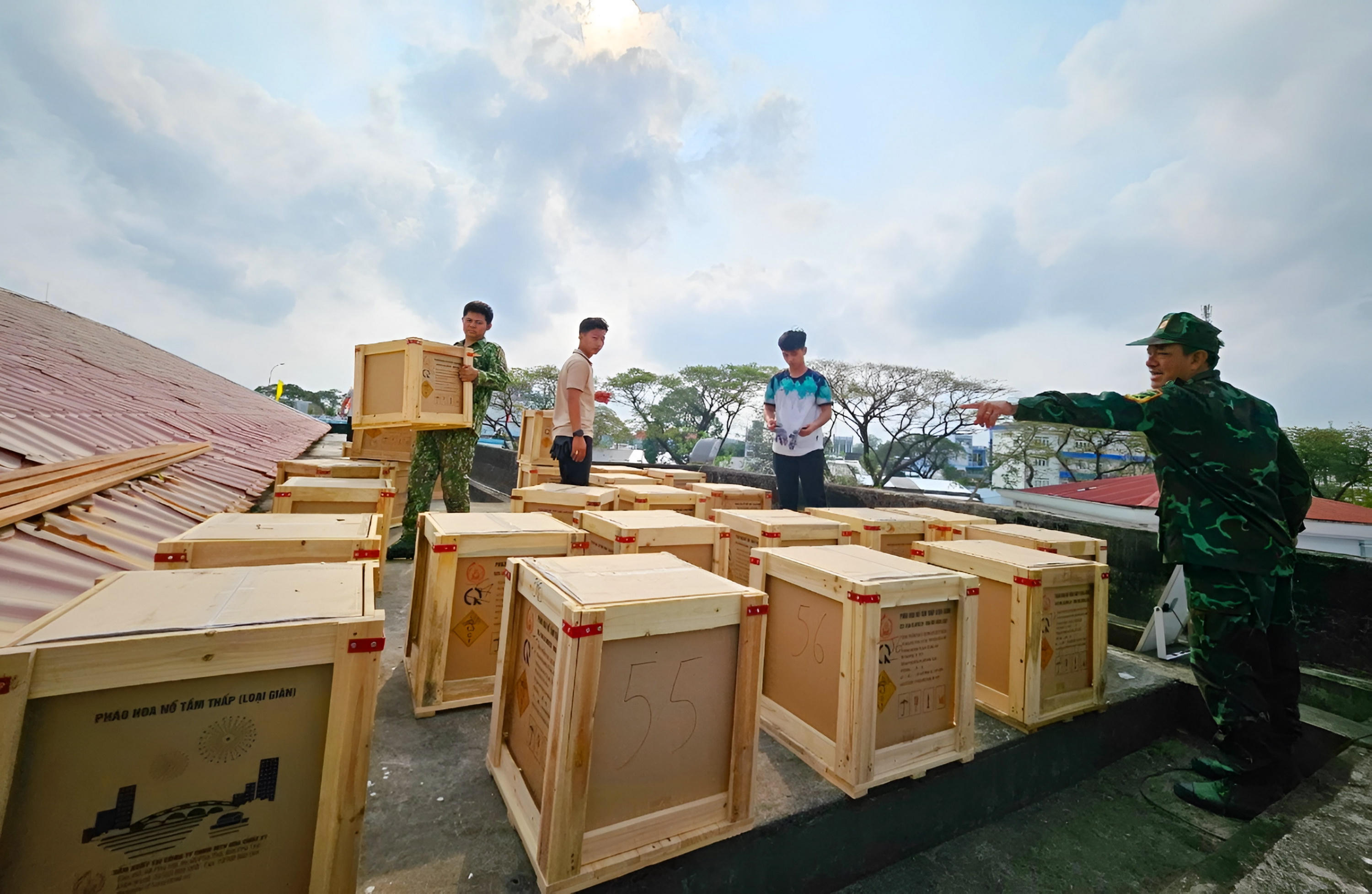 Trước khi bắn pháo hoa nghệ thuật tại Trung tâm Văn hoá - Truyền thông và Thể thao (huyện Thới Bình), Ban Chỉ huy Quân sự huyện chuẩn bị các thùng pháo hoa vào vị trí,lập các phương án bảo vệ chương trình nghệ thuật và bắn pháo hoa chào mừng năm mới Giáp Thìn năm 2024.