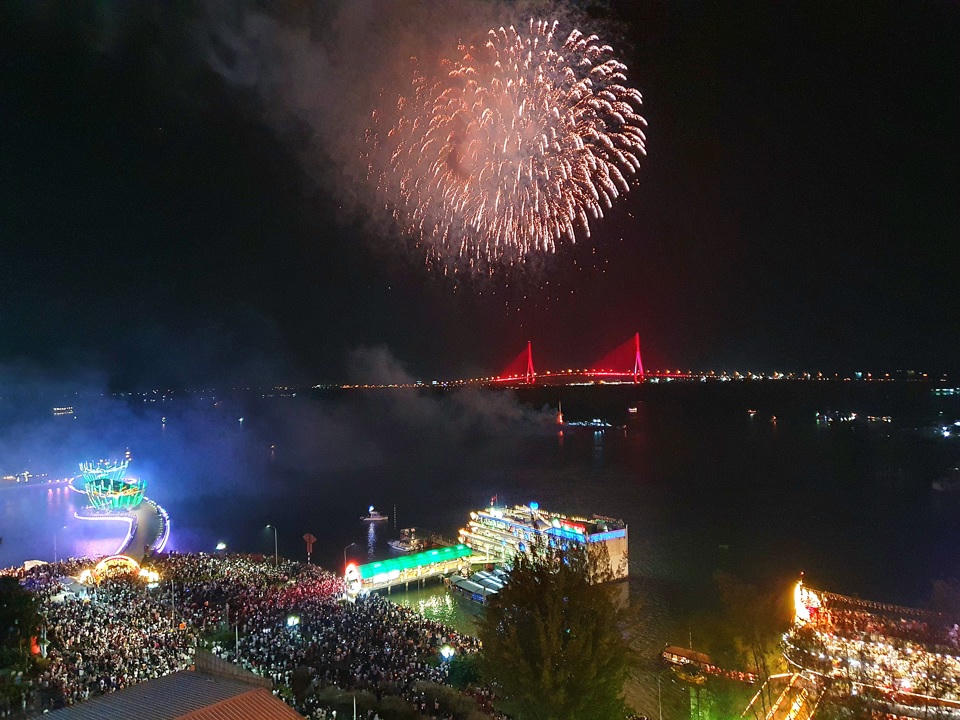 Đúng 0h dàn pháo hoa tại quảng trường Bạch Đằng (ngã 3 đường Bình Minh 6 - Bạch Đằng, quận Hải Châu) - nằm ngay bên bờ sông Hàn chính thức khai hỏa. Với 1.050 quả pháo hoa tầm trung và tầm cao, cả mặt sông Hàn đã được thắp sáng và rền vang trong tiếng reo hò của người dân và du khách.