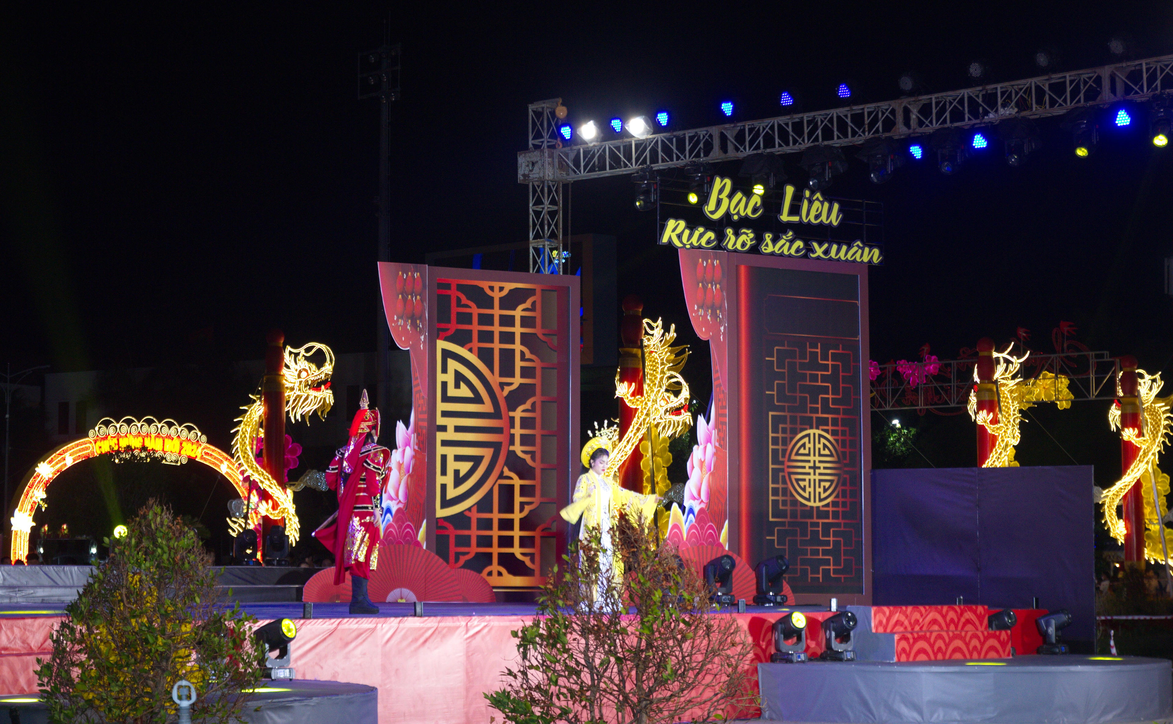 Chương trình nghệ thuật văn nghệ đêm Giao thừa 30 Tết tại Quảng trường Hùng Vương, TP Bạc Liêu.