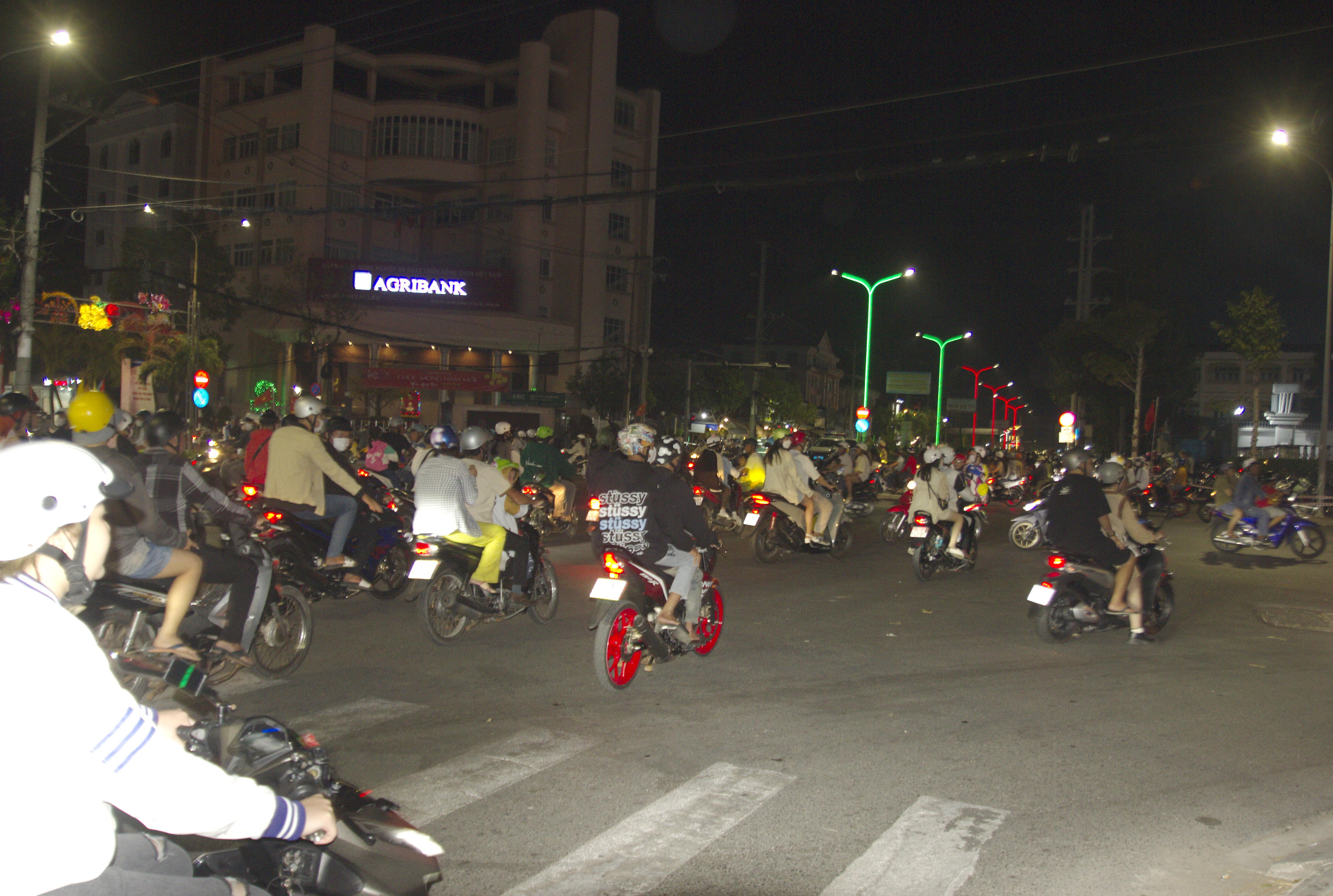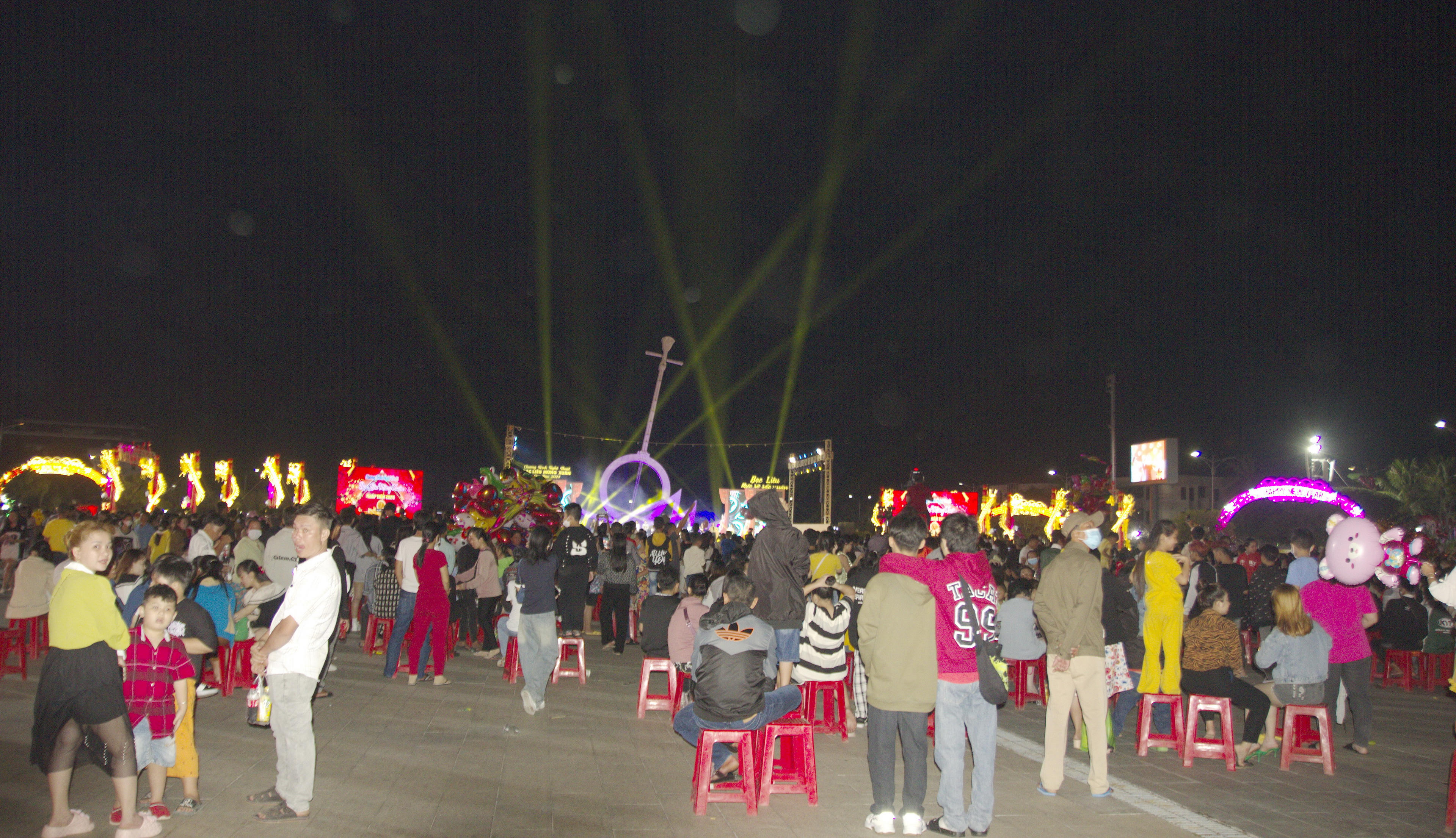 Dù khoảng 22 giờ mới đến thời điểm bắn pháo hoa nhưng từ khoảng 19 giờ 30 phút, tất cả các tuyến đường trong nội ô TP Bạc Liêu, như: Trần Phú, Trần Huỳnh, Lê Duẩn, Nguyễn Tất Thành… dẫn vào khu vực Quảng trường Hùng Vương đã kín người.