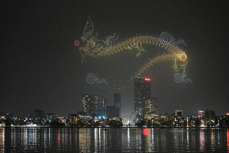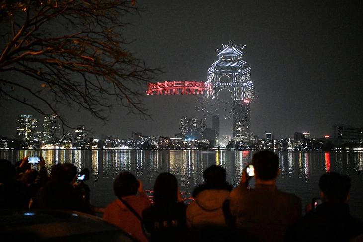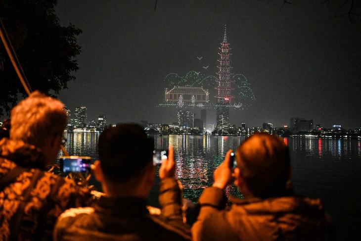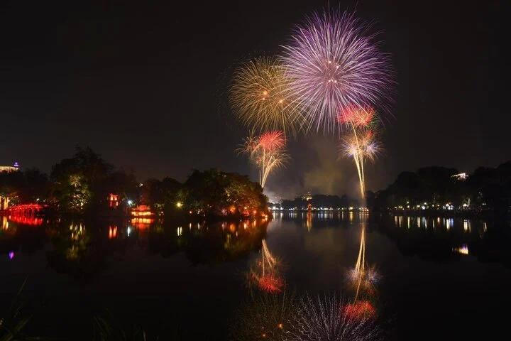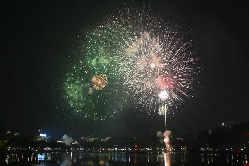 Hình ảnh pháo hoa điểm bắn hồ Hoàn Kiếm, Hà Nội (Ảnh: VTC News)