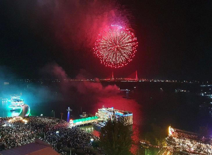 Pháo hoa thắp sáng sông Hàn (Ảnh: ĐĂNG NAM - Tuổi trẻ)