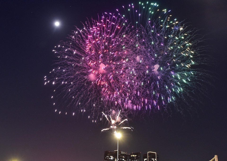 (PLVN) - Đúng 0h ngày 10/2, pháo hoa rực sáng trên bầu trời Hà Nội, TPHCM, Đà Nẵng và nhiều tỉnh thành trong thời khắc Giao thừa, chào đón năm mới Giáp Thìn 2024. Hàng triệu người dân đã đổ ra đường đón giao thừa và ngắm pháo hoa với tâm thế hứng khởi, tươi vui.