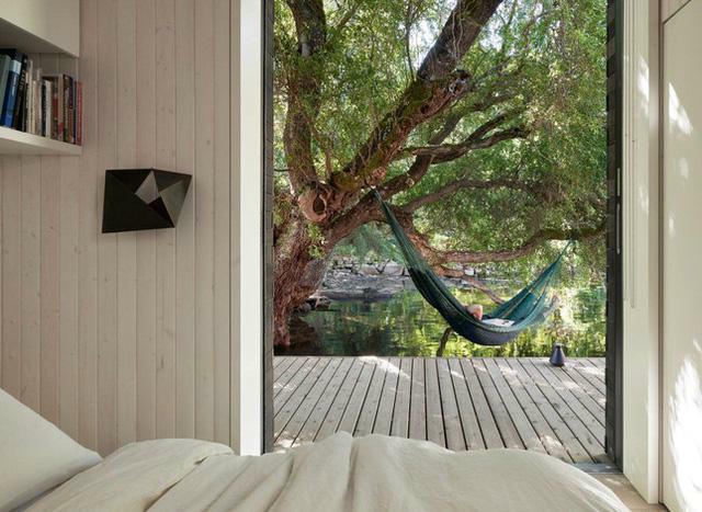 Phần còn lại của ngôi nhà có hai phòng ngủ được ốp gỗ và một phòng tắm. Nhà thiết kế sử dụng cửa kính ở tất cả các phòng ngoại trừ phòng tắm để tạo cảm giác không gian mở cho ngôi nhà. |