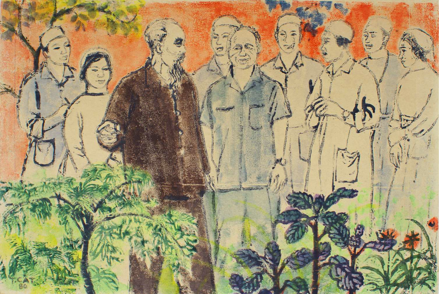 | Bác Hồ với thầy thuốc | Nguyễn Trọng Cát | Khắc gỗ | 1980 |