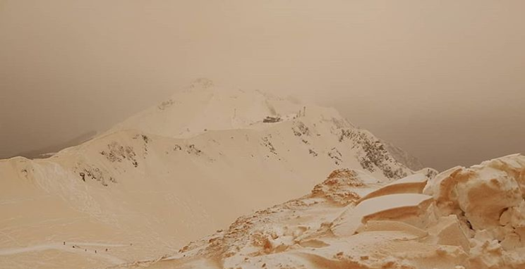 Theo BBC, tuyết màu cam là kết quả của những cơn bão cát từ sa mạc Sahara, cuốn lên khí quyển, bay đến nơi khác rồi trở lại mặt đất lẫn mưa và tuyết.