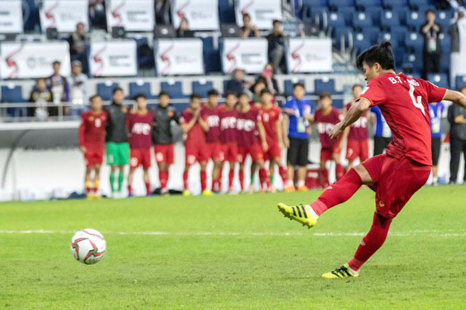 Vượt qua sức ép tâm lý, trung vệ sinh năm 1995 thực hiện thành công quả luân lưu ấn định tỷ số 4-2 cho Việt Nam. 'Tôi vô cùng sung sướng và hạnh phúc khi toàn đội đã sát cánh cùng nhau giành vé vào tứ kết', người hùng của tuyển Việt Nam chia sẻ thêm.