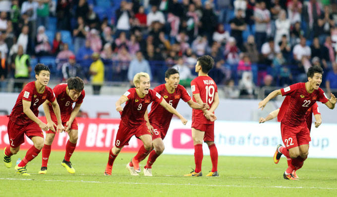 Các đồng đội nằm đè lên Tiến Dũng, vỡ òa trong niềm vui sướng lần đầu lọt vào vòng đấu dành cho 8 đội mạnh nhất Asian Cup sau 12 năm. Năm 2007, tuyển Việt Nam dưới thời HLV Alfred Riedl cũng từng lọt vào tới tứ kết Asian Cup khi là một trong những nước đăng cai giải đấu.