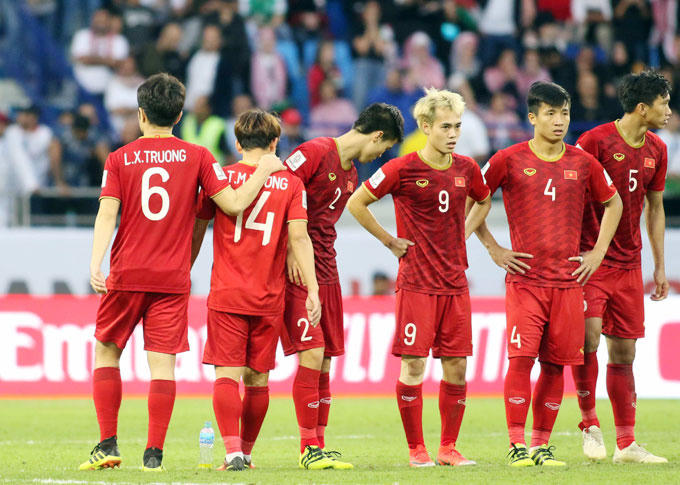 Các cầu thủ Jordan thất thần, buồn bã khi có hai cầu thủ đá hỏng luân lưu trong khi Việt Nam chỉ thất bại một lần.