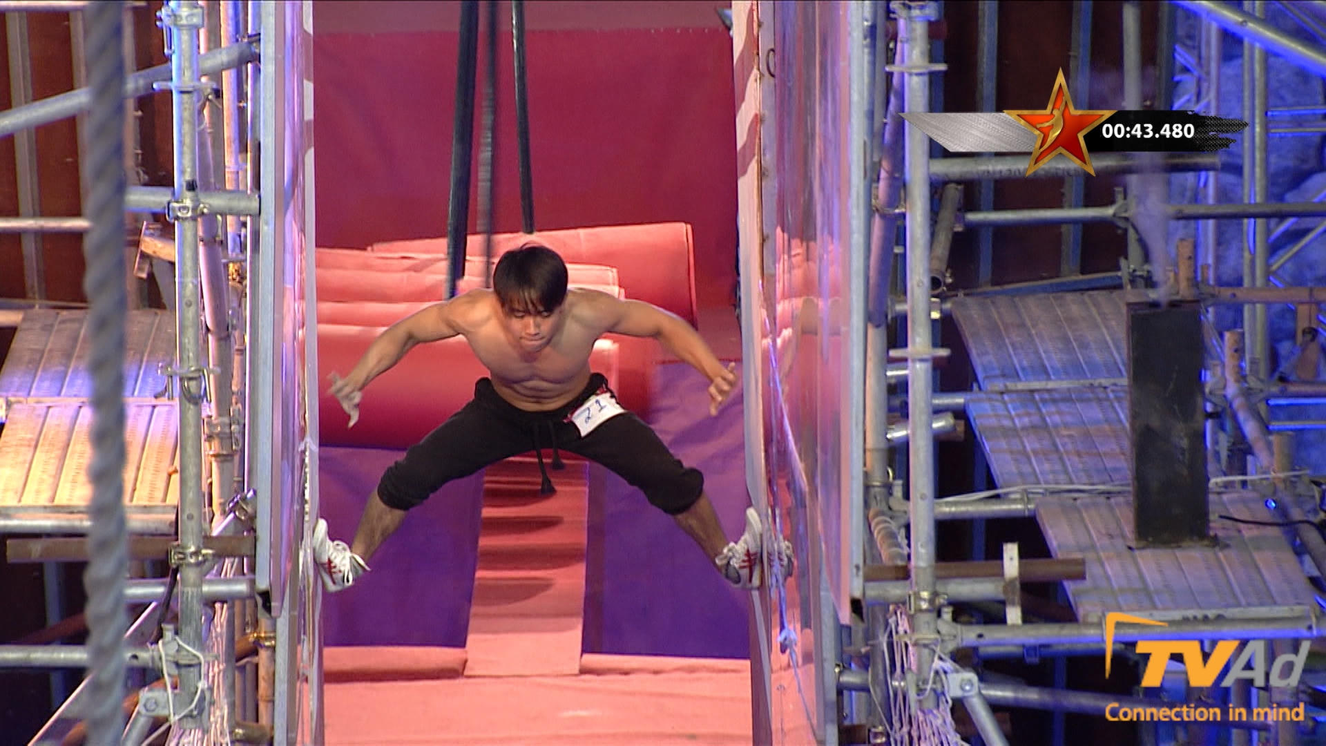 Các chiến binh sẽ phải lần lượt vượt qua những thử thách: nhảy bước 40 bám trụ - tránh búa qua cầu- tường nhện- tarzan đu dây- tiều phu về đích.