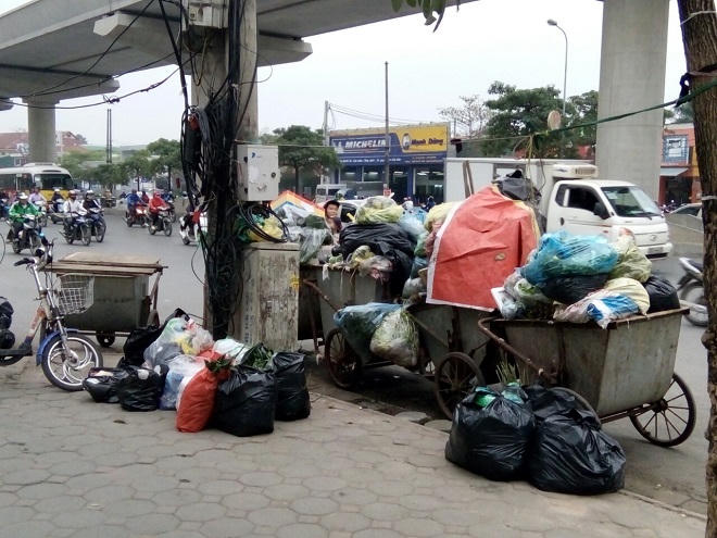 Ghi nhận tại tuyến vỉa hè thuộc quận Đống Đa, việc để rác thải theo dọc đường đã tạo nên hình ảnh xấu cho những con đường phố. Người đi đường luôn khó chịu trước những mùi hôi nồng nặc của tạp nham rác thải bày ra.