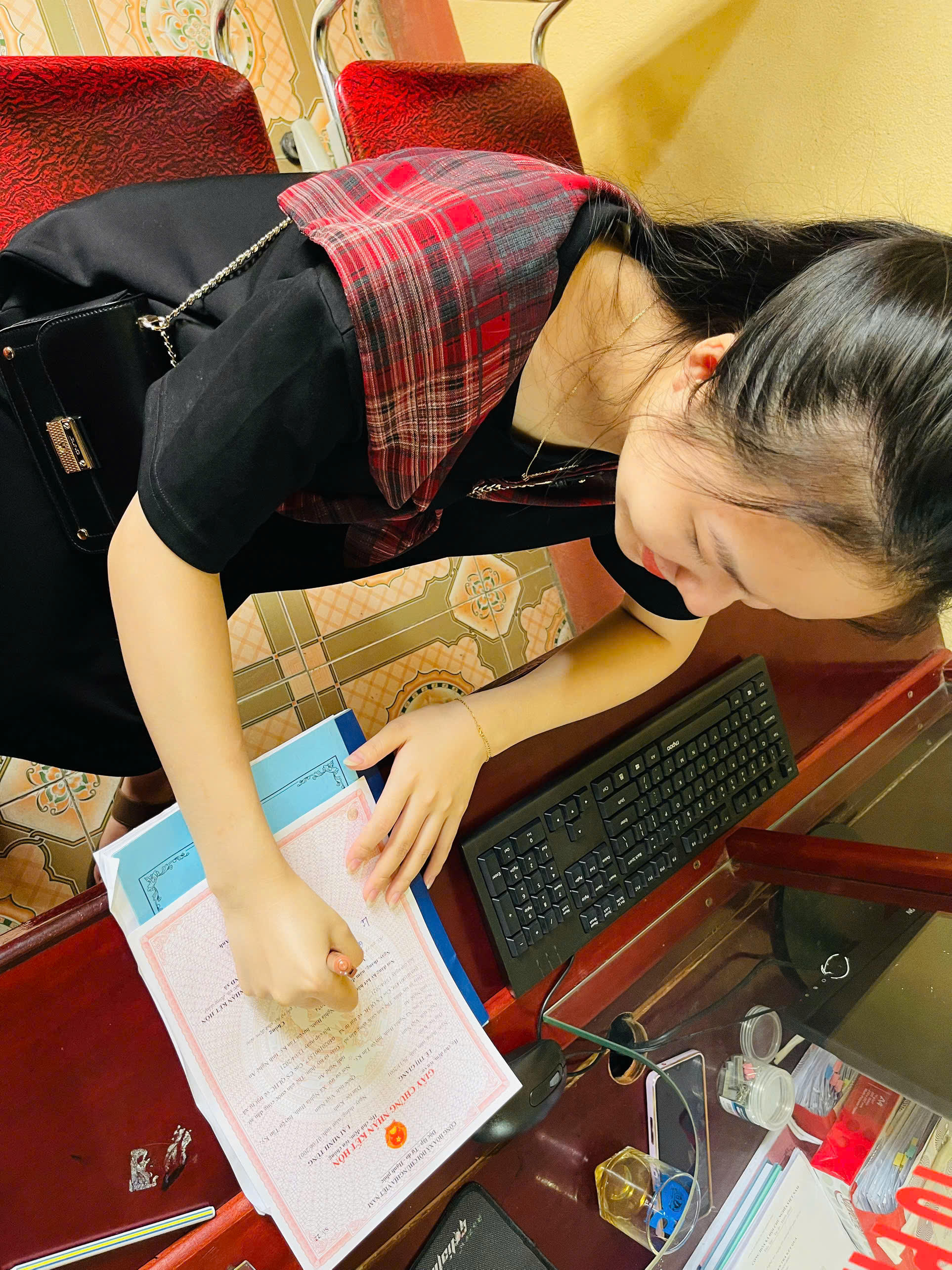 “Lúc đó, tôi khá bất ngờ vì không nghĩ là giờ mọi thứ lại thuận lợi đến như vậy. Cứ tưởng hai vợ chồng sẽ phải mất công chạy mười mấy cây số để về xã của tôi xin giấy xác nhận độc thân, nào ngờ chỉ cần cung cấp CCCD, các cán bộ tư pháp hỗ trợ xử lý trên hệ thống là xong”, chị Yến nói.