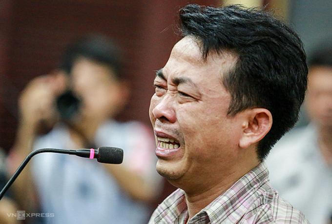 Cựu chủ tịch VN Pharma, Nguyễn Minh Hùng, khóc tại phiên xét xử giai đoạn 1 của vụ án, cuối năm 2017. Ảnh: Thành Nguyễn.
