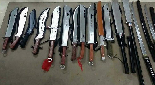 Qua khám xét, cơ quan công an thu giữ tang vật thu giữ gồm 2.547 cây đao, kiếm, dao, lưỡi lê, mã tấu các loại; 93 súng bắn đạn bi; hơn 700 súng điện, roi điện và hàng trăm bình xịt hơi cay, đạn súng bắn điện…