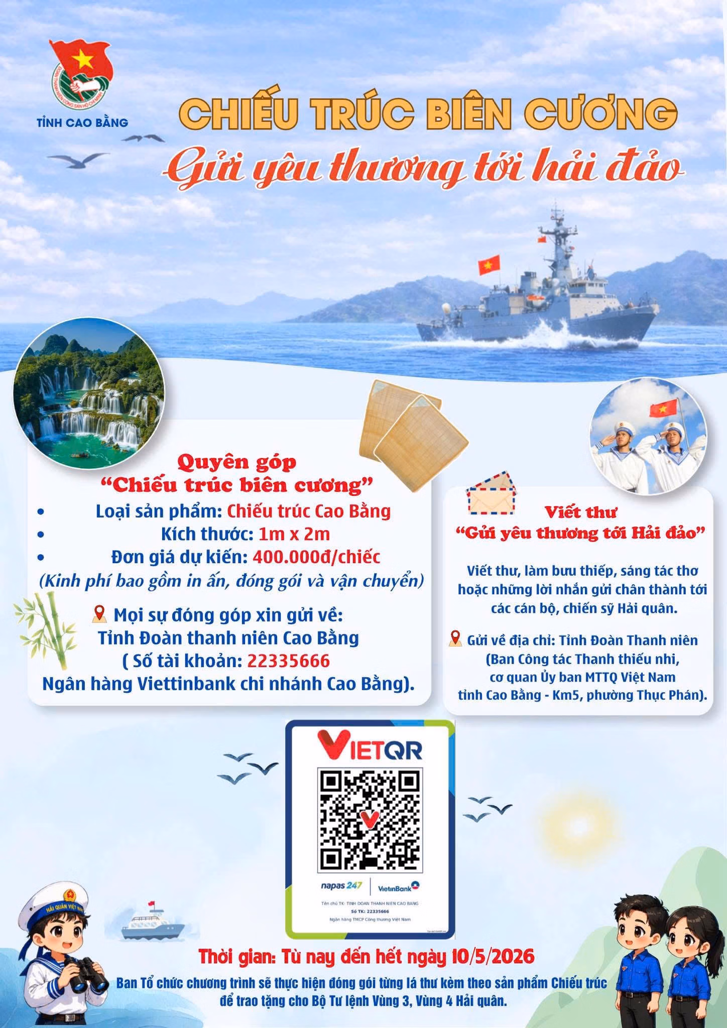 Qua chương trình, một lần nữa khẳng định: dù cách xa về địa lý, tình cảm của đồng bào miền núi Cao Bằng dành cho biển đảo luôn hiện hữu và nồng ấm. Mỗi chiếc chiếu trúc gửi đi là một lời cam kết của tuổi trẻ biên cương: luôn là hậu phương vững chắc, cùng các chiến sĩ Hải quân gìn giữ từng tấc đất, từng dặm sóng thiêng liêng của Tổ quốc Việt Nam.