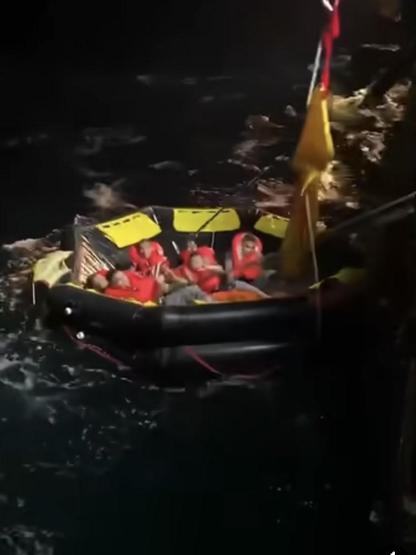 Các bức ảnh và video đăng tải trên mạng xã hội Twitter cho thấy một nhóm binh sĩ mặc áo phao màu cam ngồi trên chiếc bè bơm hơi màu đen đang di chuyển ra khỏi một con tàu trong bóng tối, trong khi sóng vỗ xung quanh.